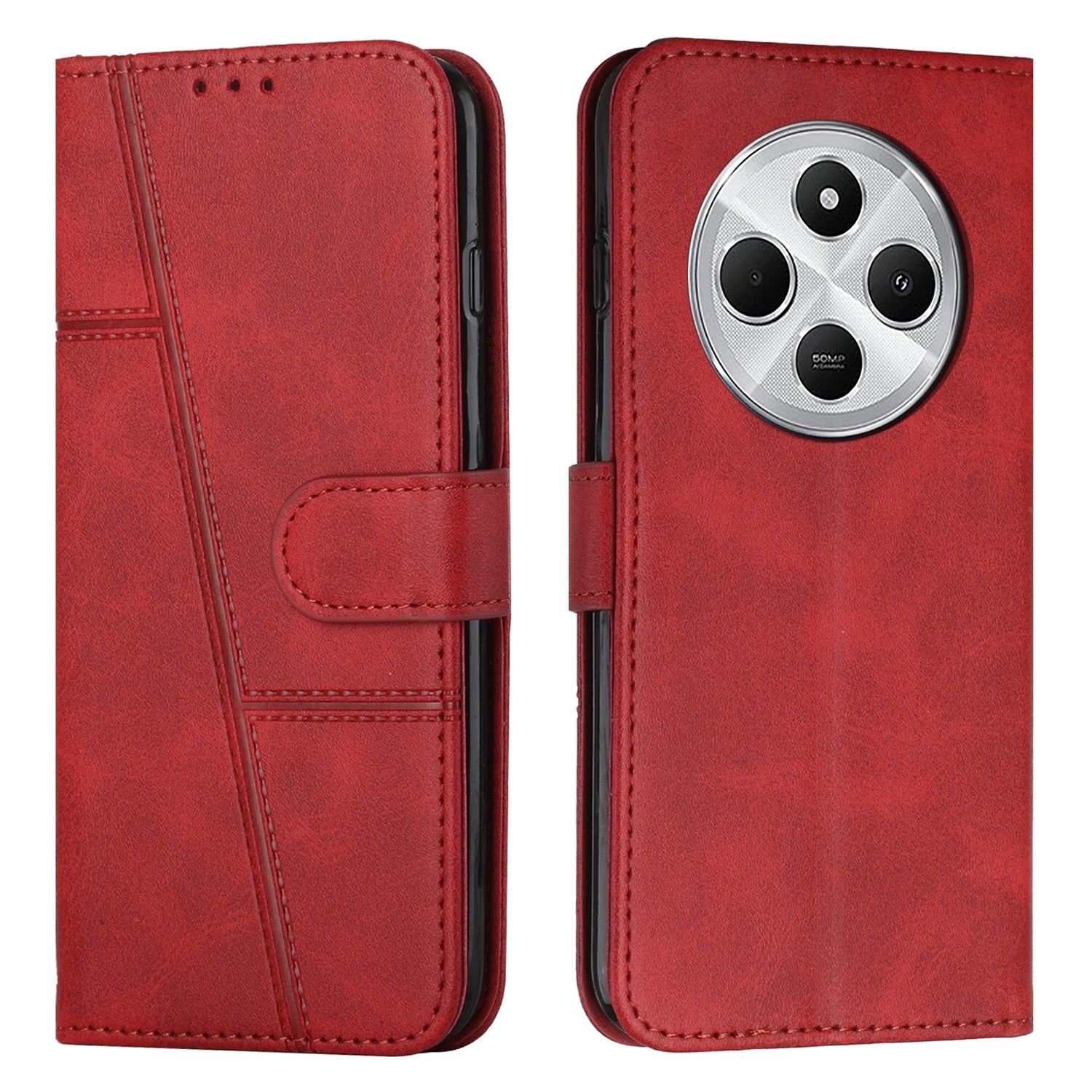 For Redmi 14C 4G Stitching Calf Texture Buckle Leather Phone Case(Red)