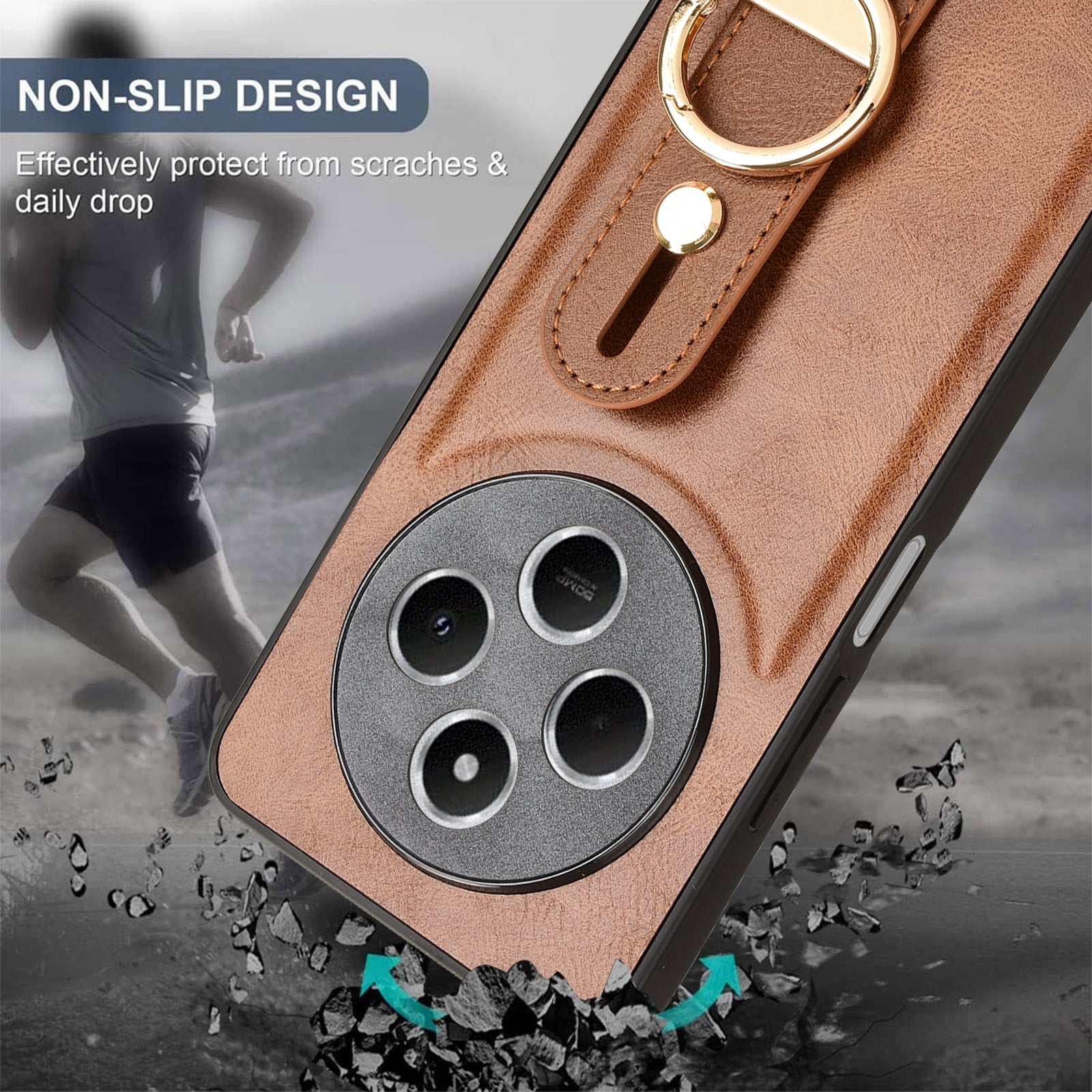 For Redmi 14C 4G Wristband Leather Back Phone Case(Brown)
