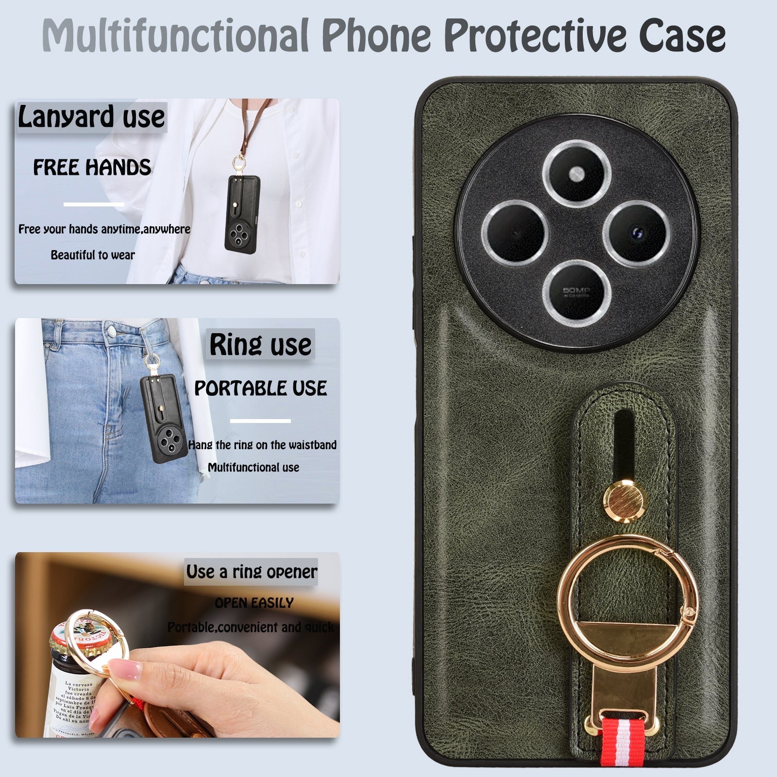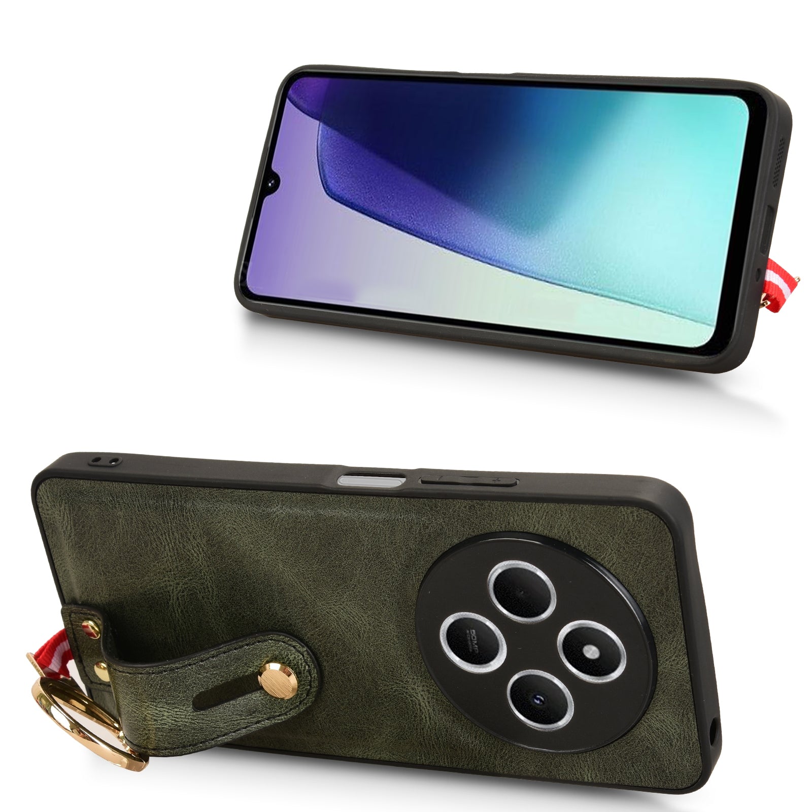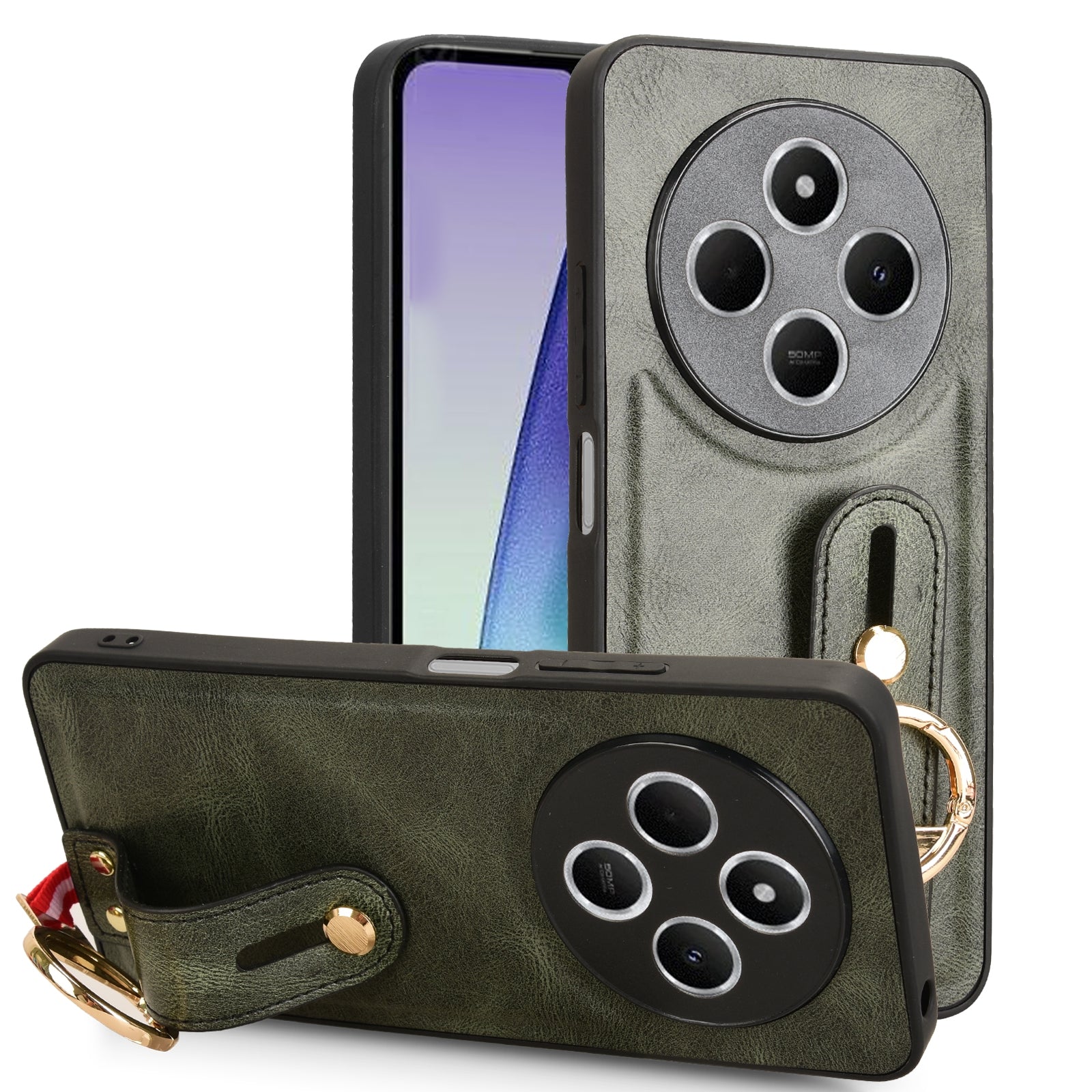 For Redmi 14C 4G Wristband Leather Back Phone Case(Green)
