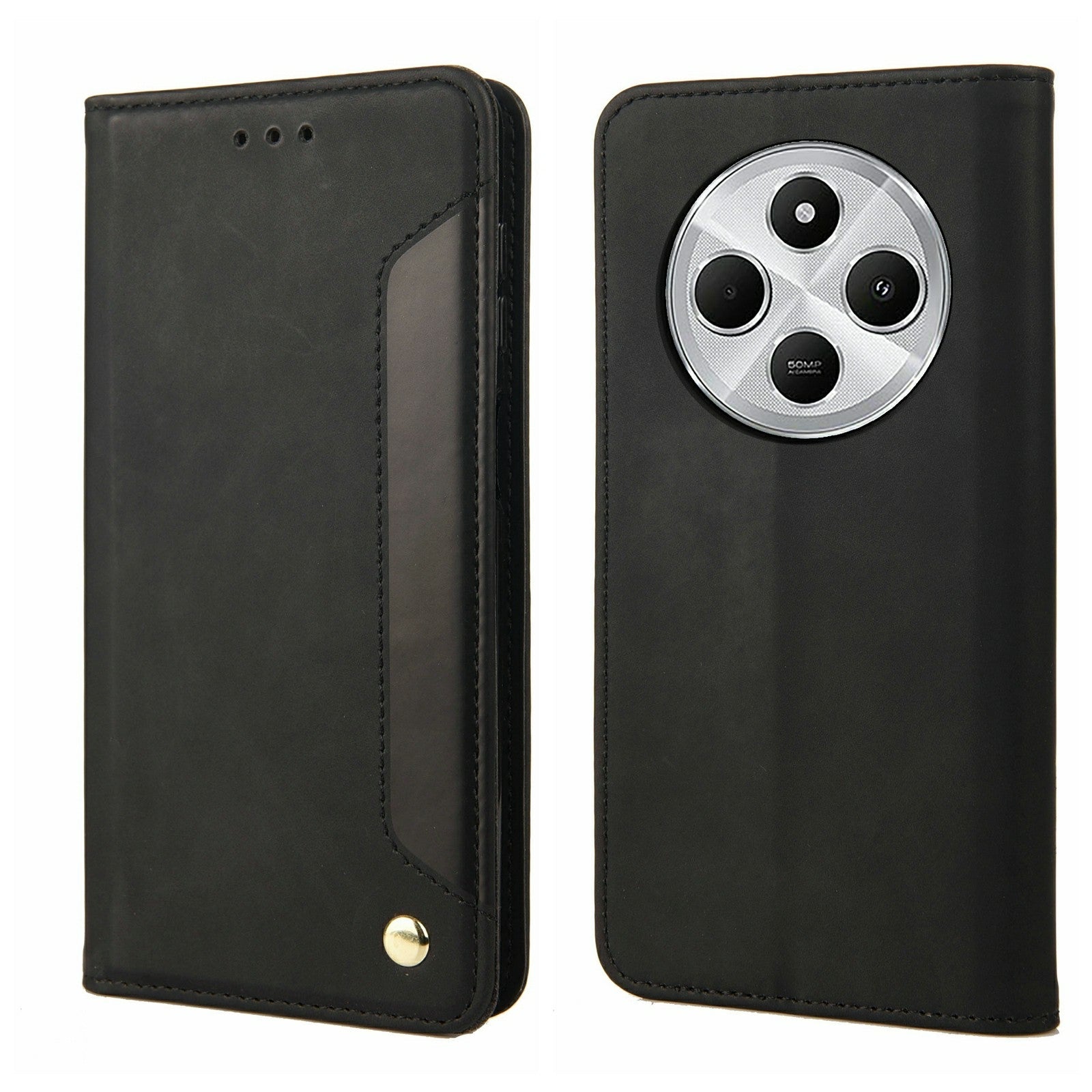 For Redmi 14C Skin Feel Splicing Leather Phone Case(Black)