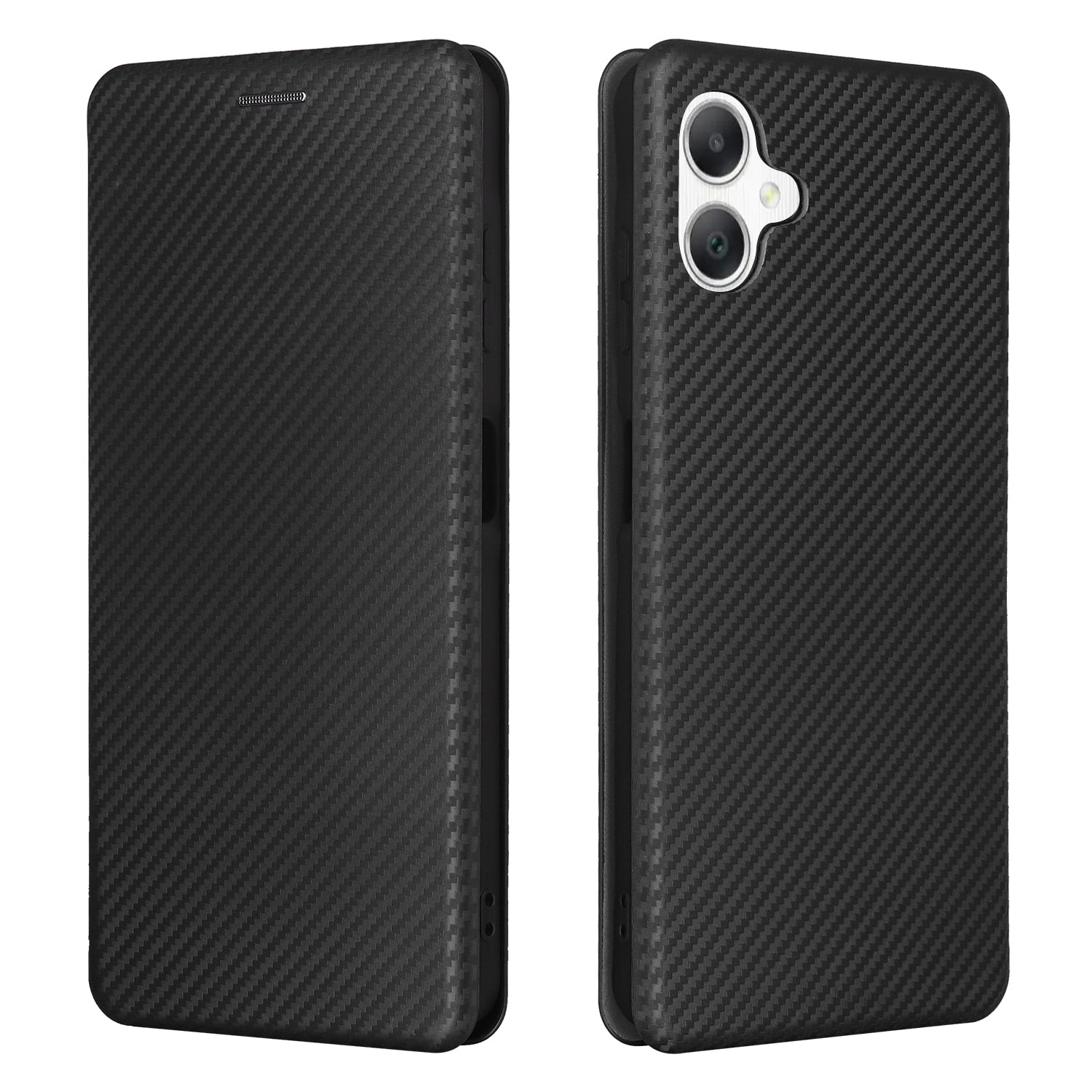 For Samsung Galaxy A06 Case Carbon Fiber Texture Drop-Proof PU Leather Phone Cover - Black