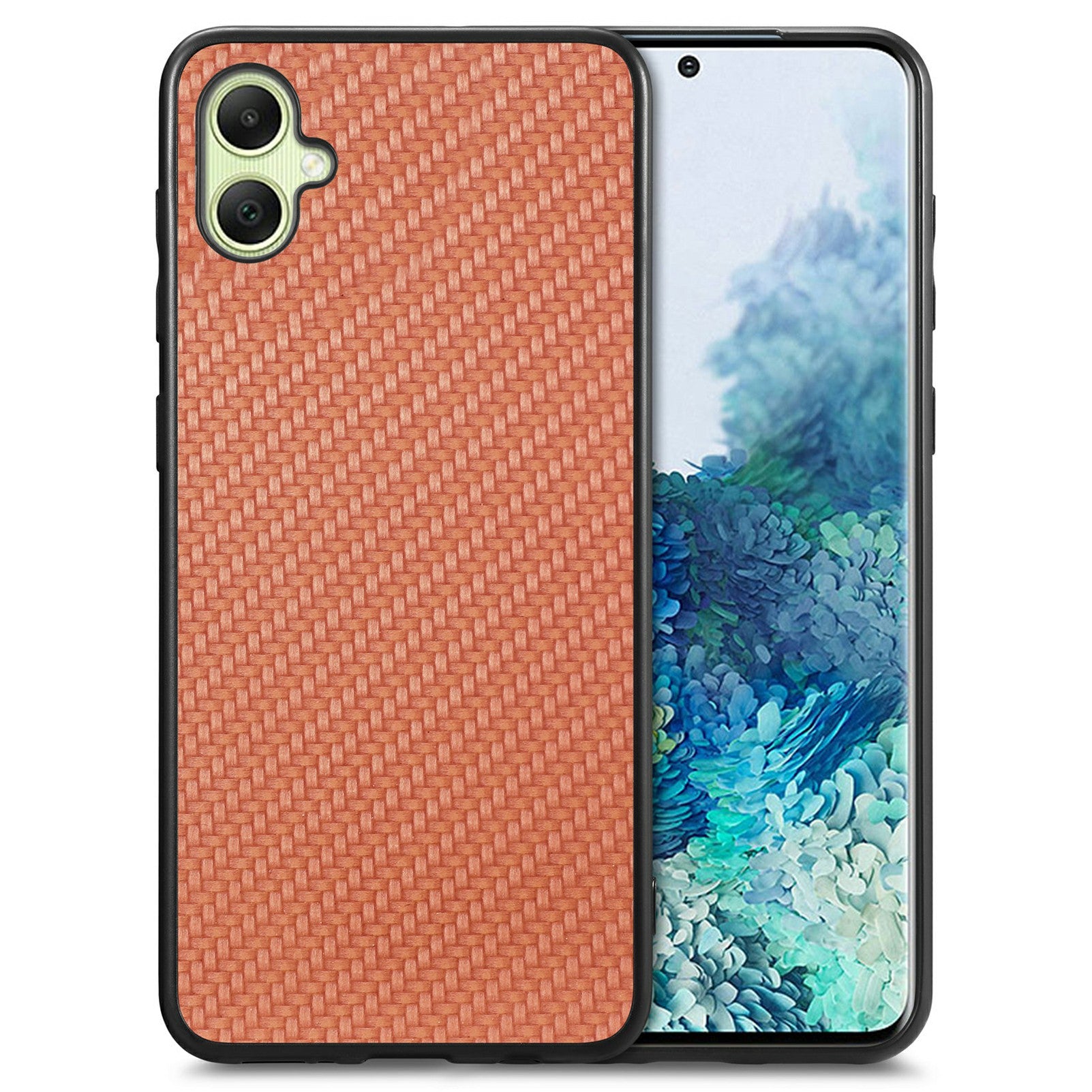 For Samsung Galaxy A06 Case Carbon Fiber Texture PU+PC+TPU Phone Cover - Brown