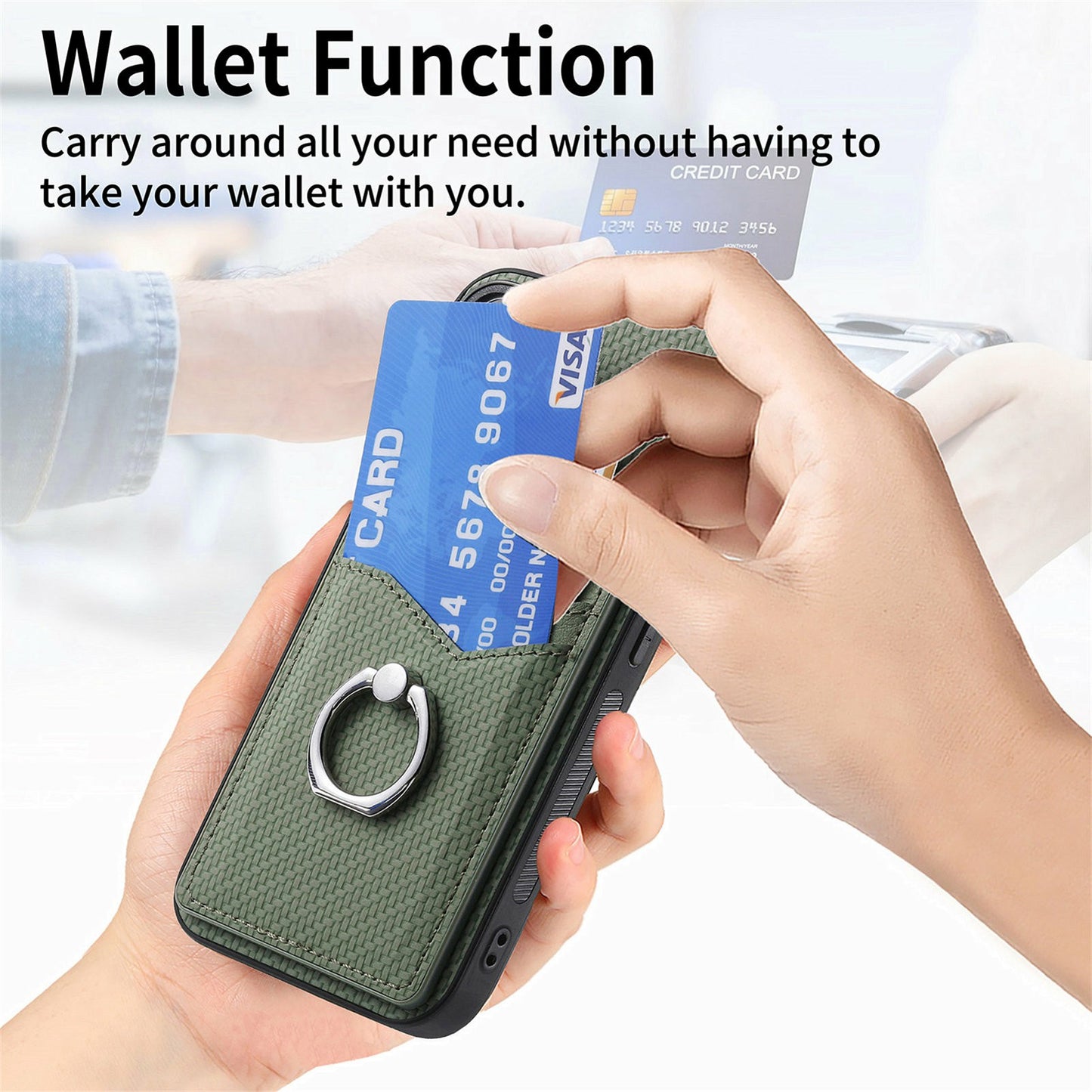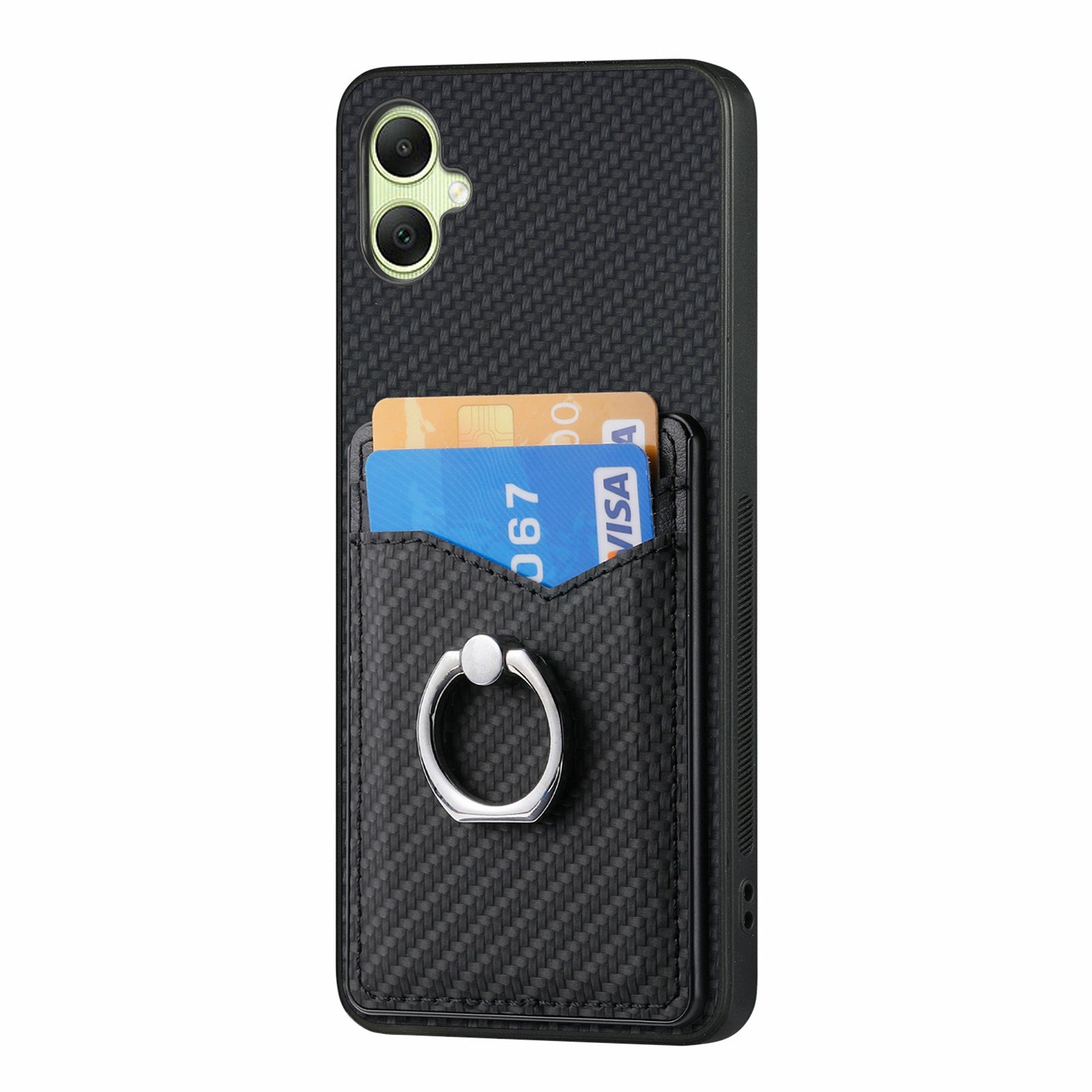 For Samsung Galaxy A06 Case Card Slots Ring Holder Kickstand Phone Cover - Black