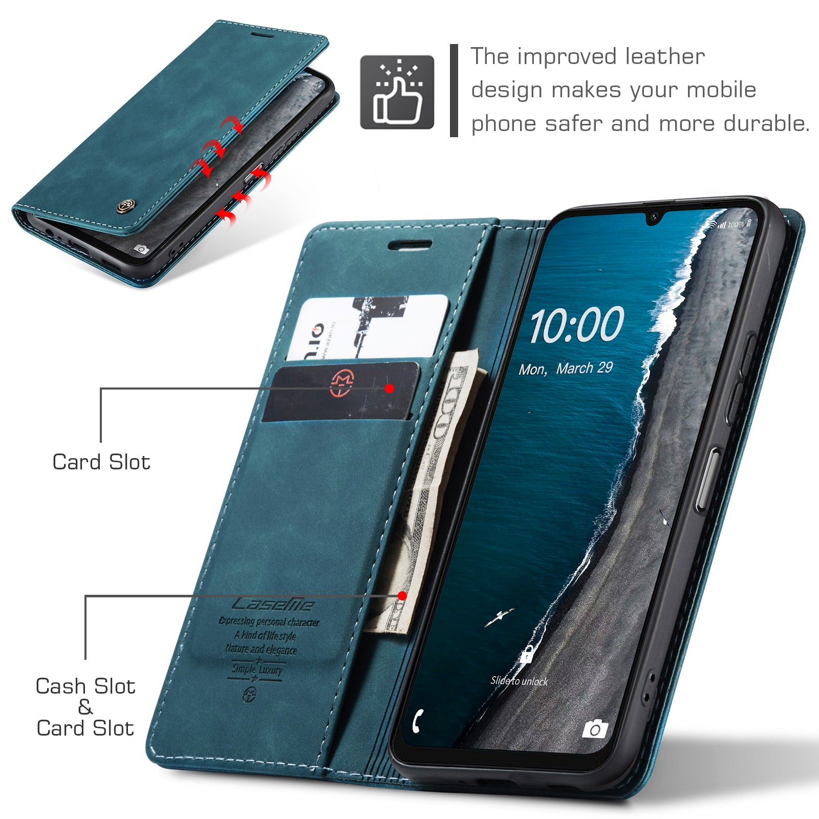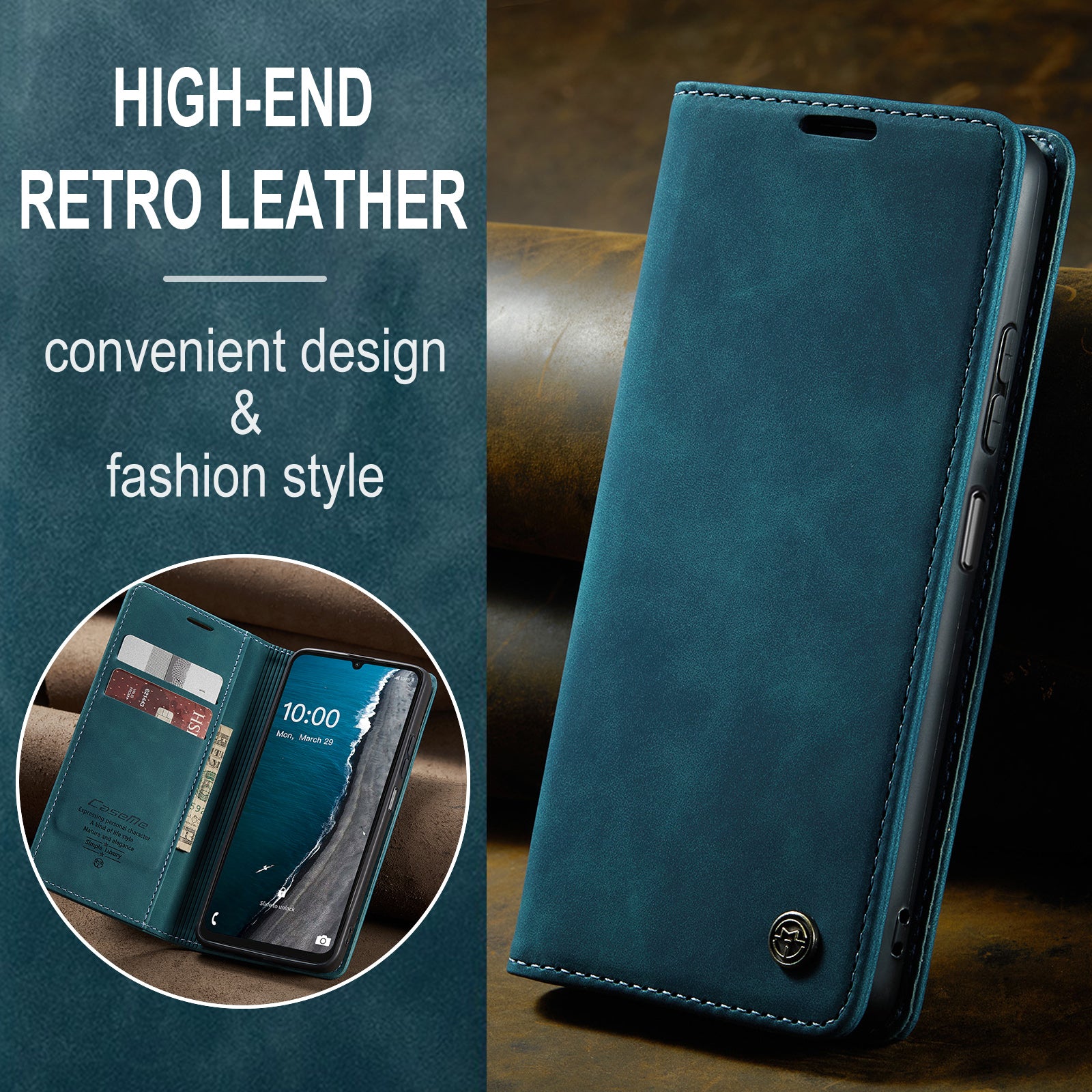 For Samsung Galaxy A06 Case CASEME 013 Series Card Holder Stand Leather Phone Cover - Blue