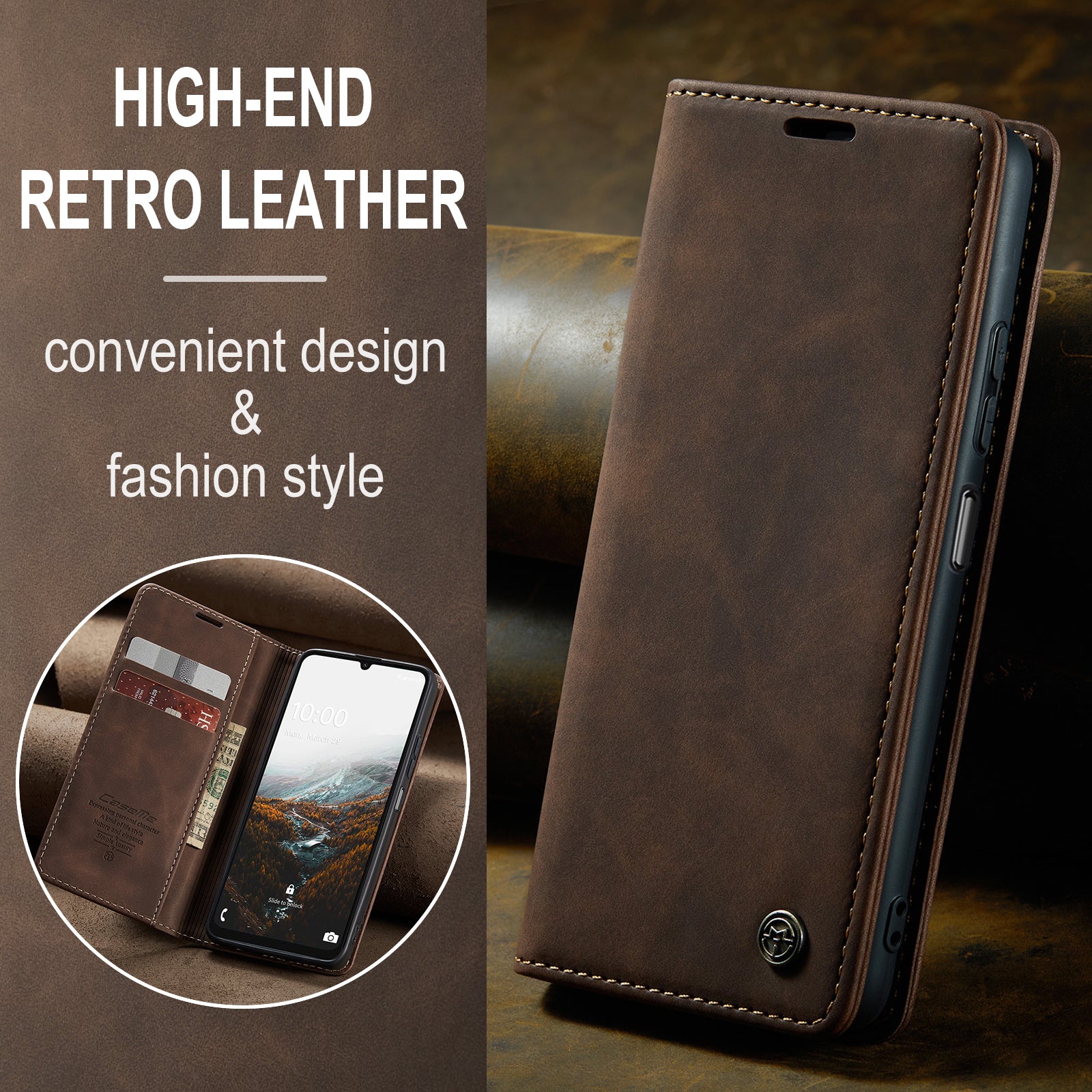 For Samsung Galaxy A06 Case CASEME 013 Series Card Holder Stand Leather Phone Cover - Coffee