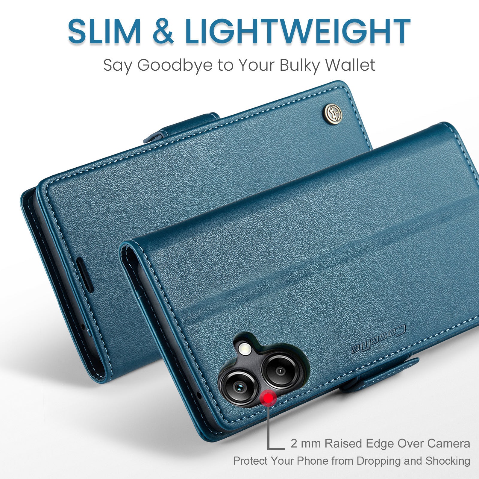 For Samsung Galaxy A06 Case CASEME 023 Series RFID Blocking Glossy Stand Phone Cover - Blue