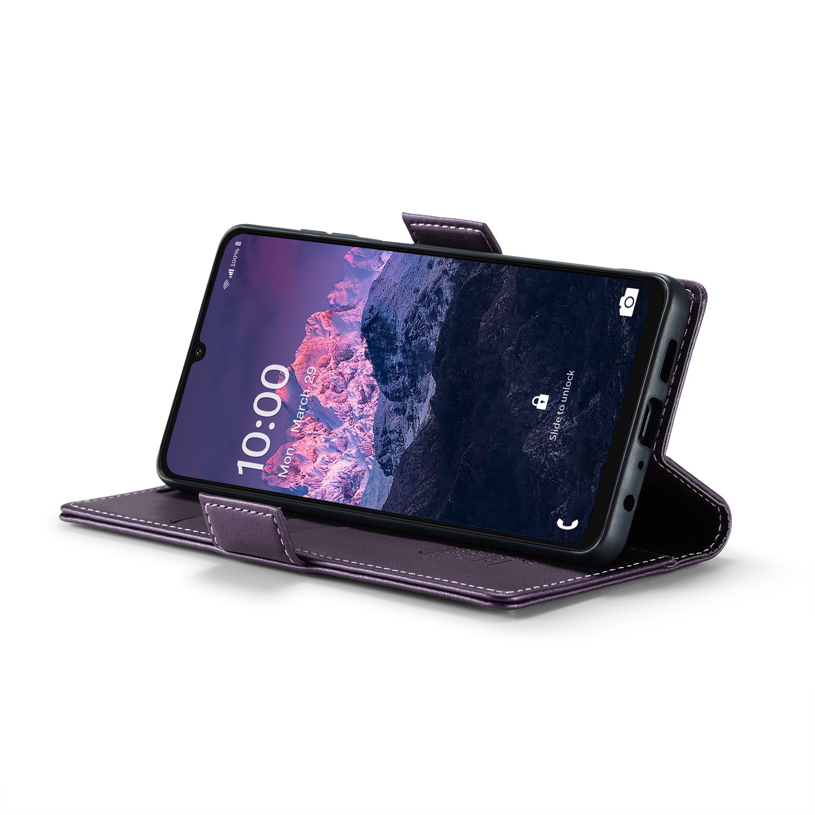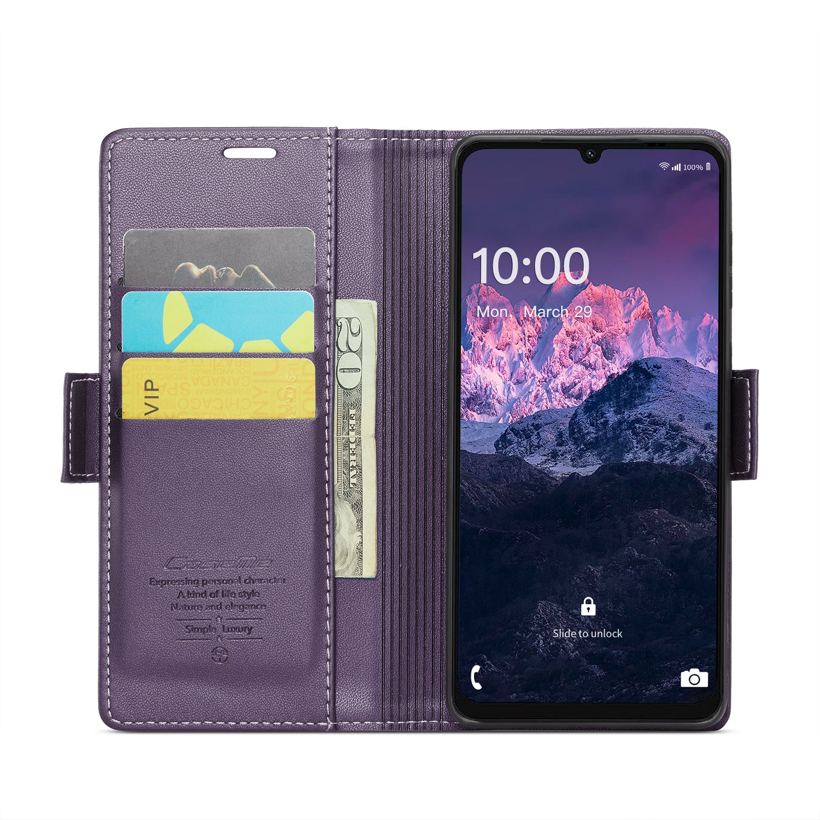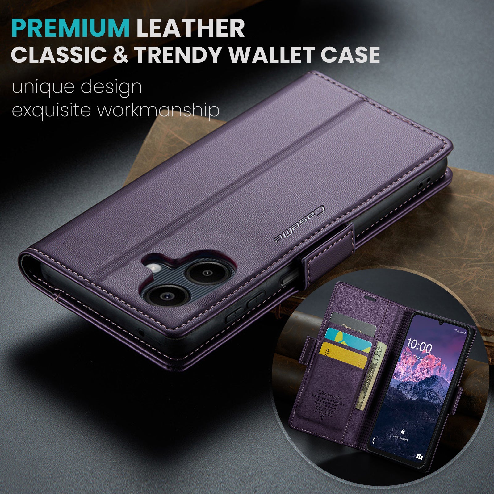 For Samsung Galaxy A06 Case CASEME 023 Series RFID Blocking Glossy Stand Phone Cover - Purple