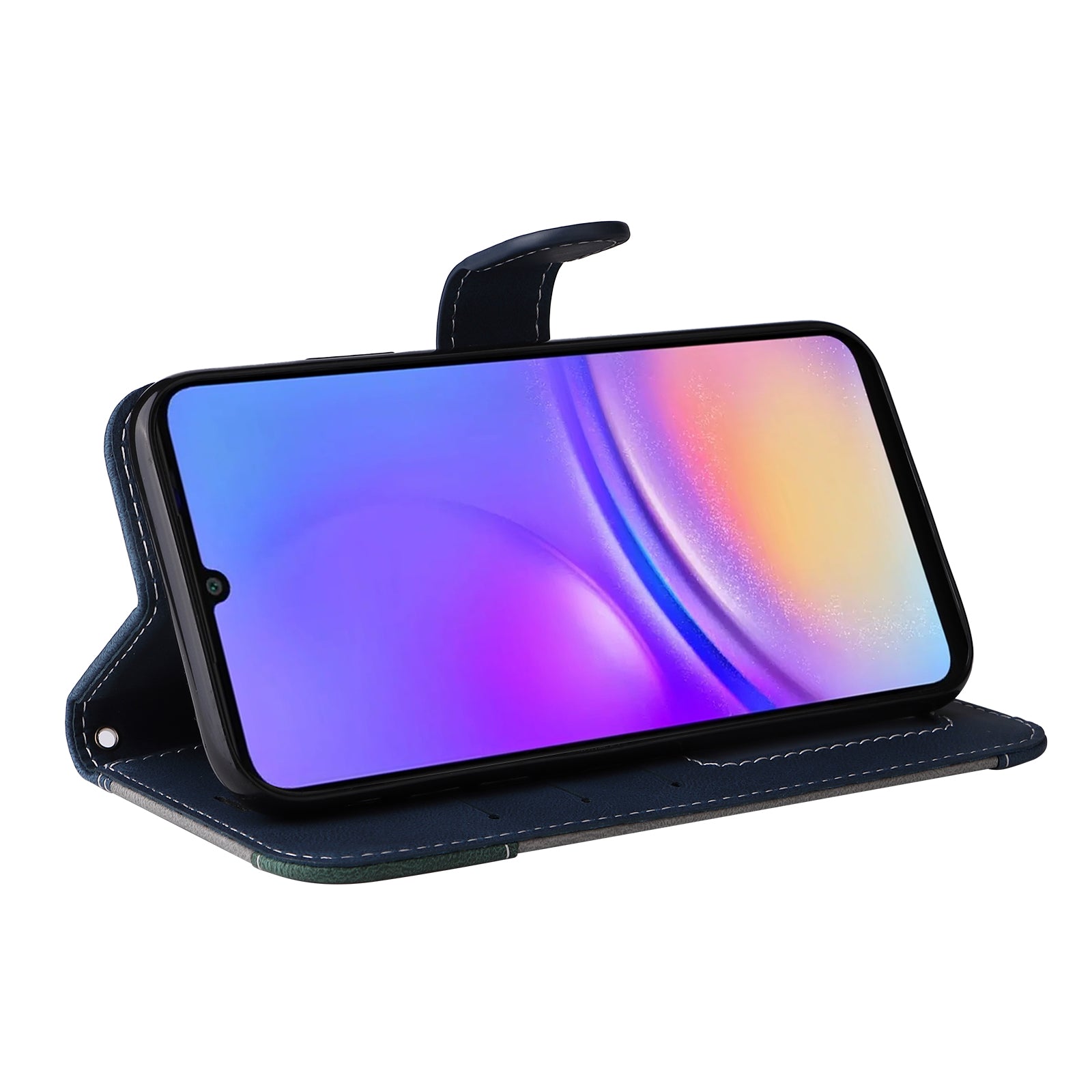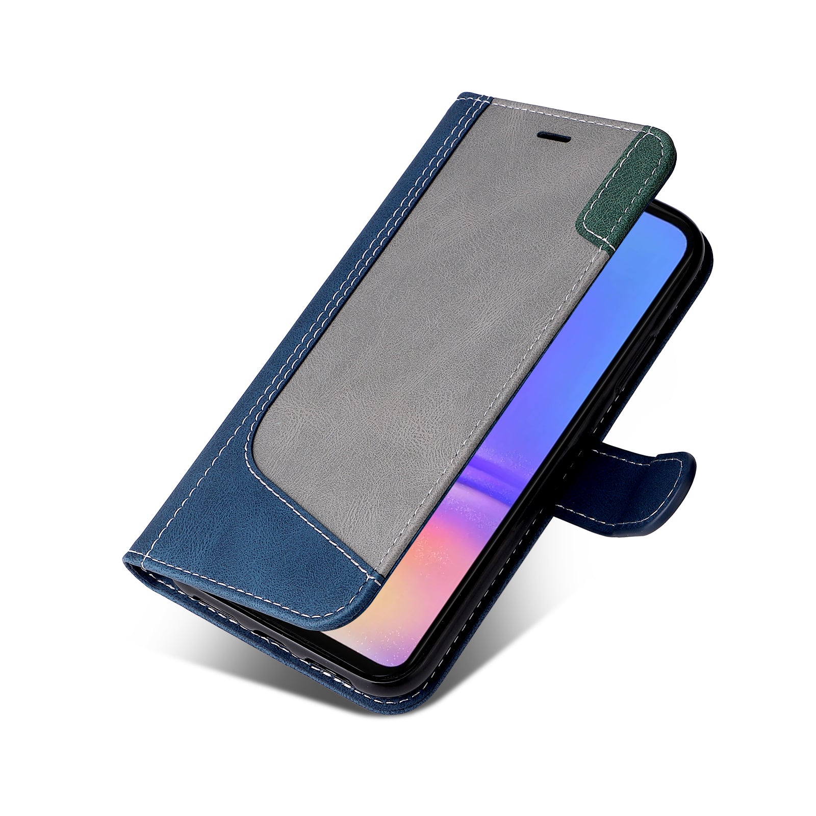 For Samsung Galaxy A06 Case Flip Wallet Leather Phone Cover 3 Color Splicing - Blue