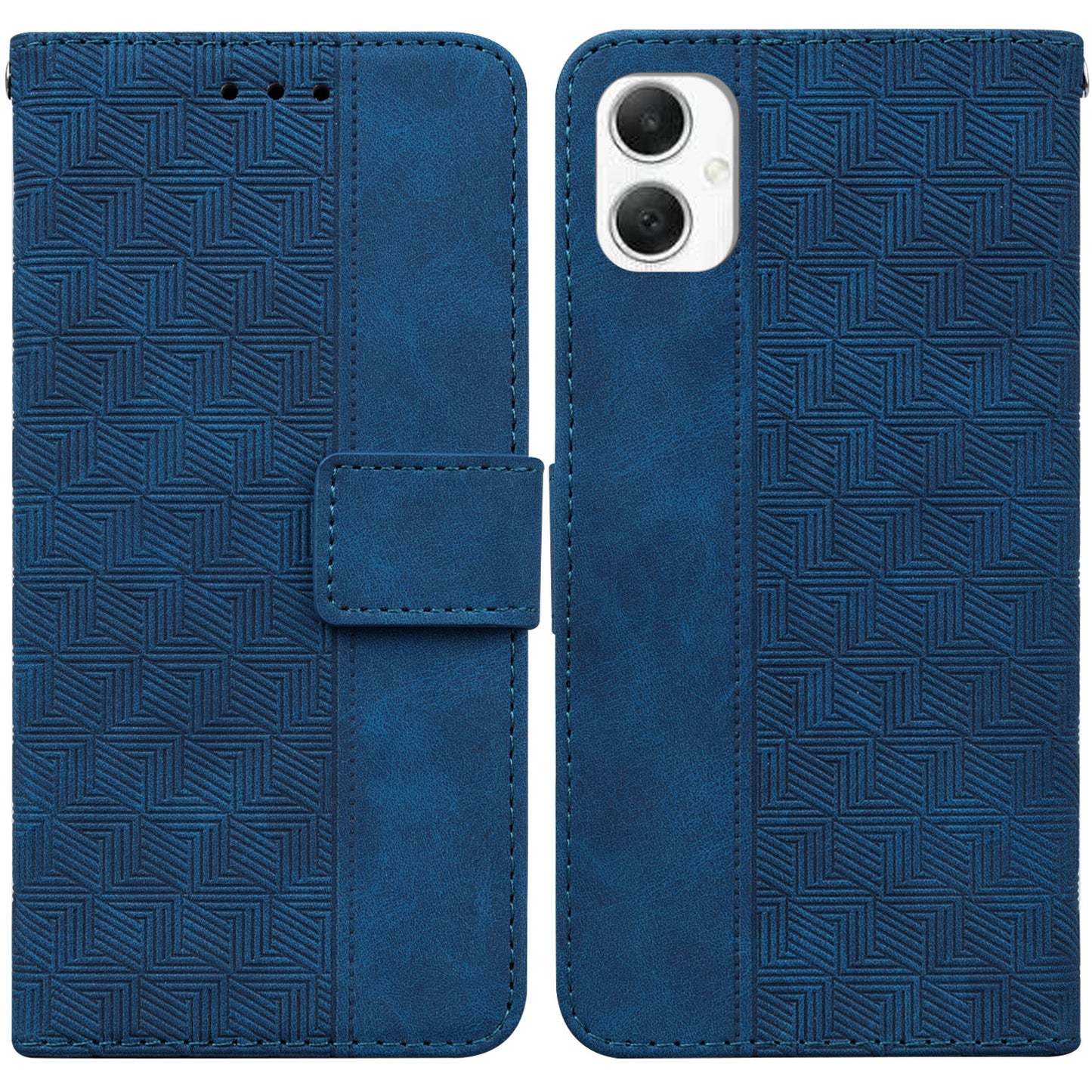 For Samsung Galaxy A06 Case Geometry Pattern Leather Wallet Phone Cover - Blue