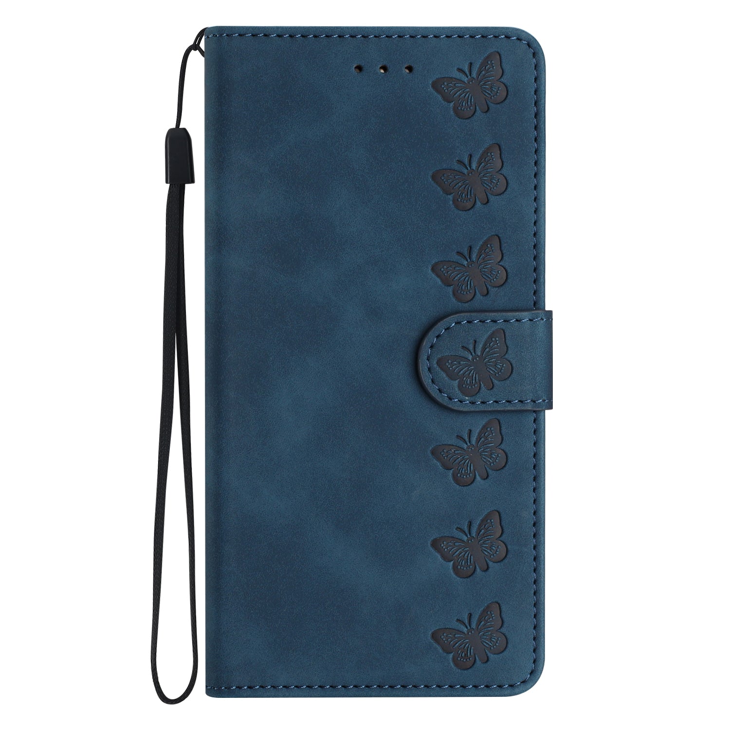 For Samsung Galaxy A06 Case Imprinted Butterfly Leather Wallet Phone Cover - Blue