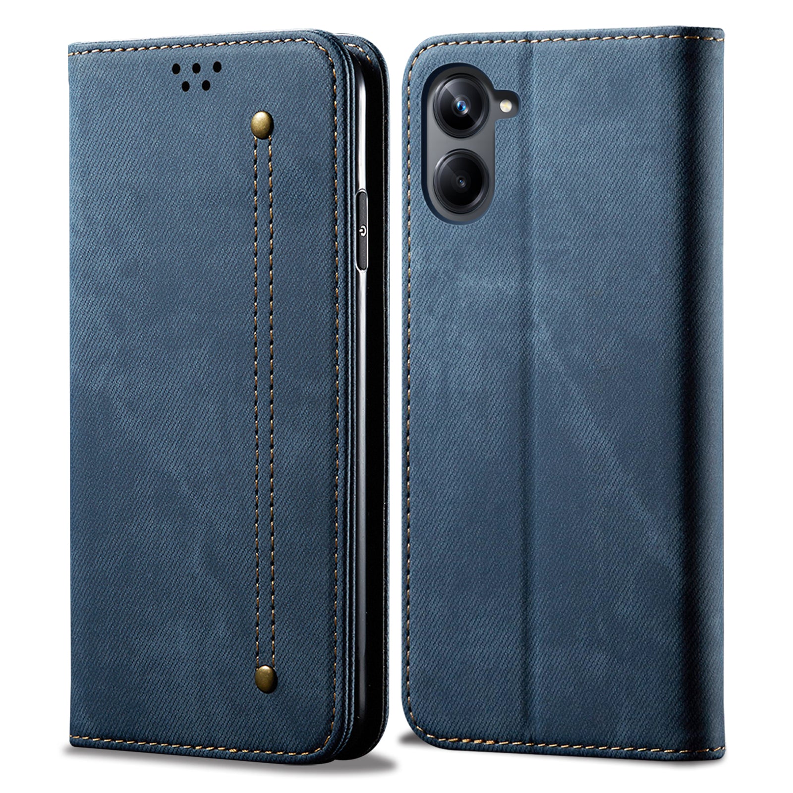 For Samsung Galaxy A06 Case Jeans Cloth Texture Anti-Scratch Leather Stand Phone Cover - Blue
