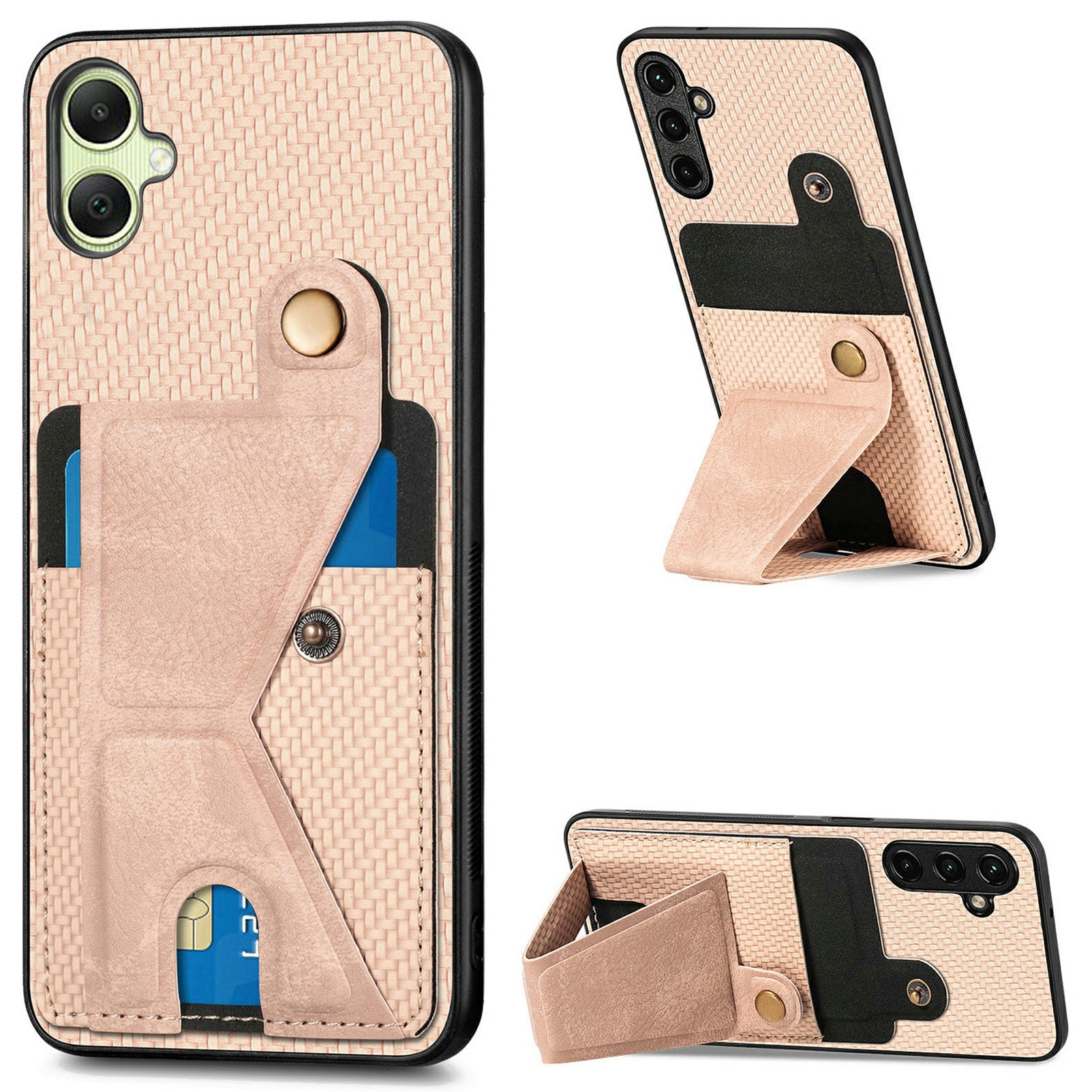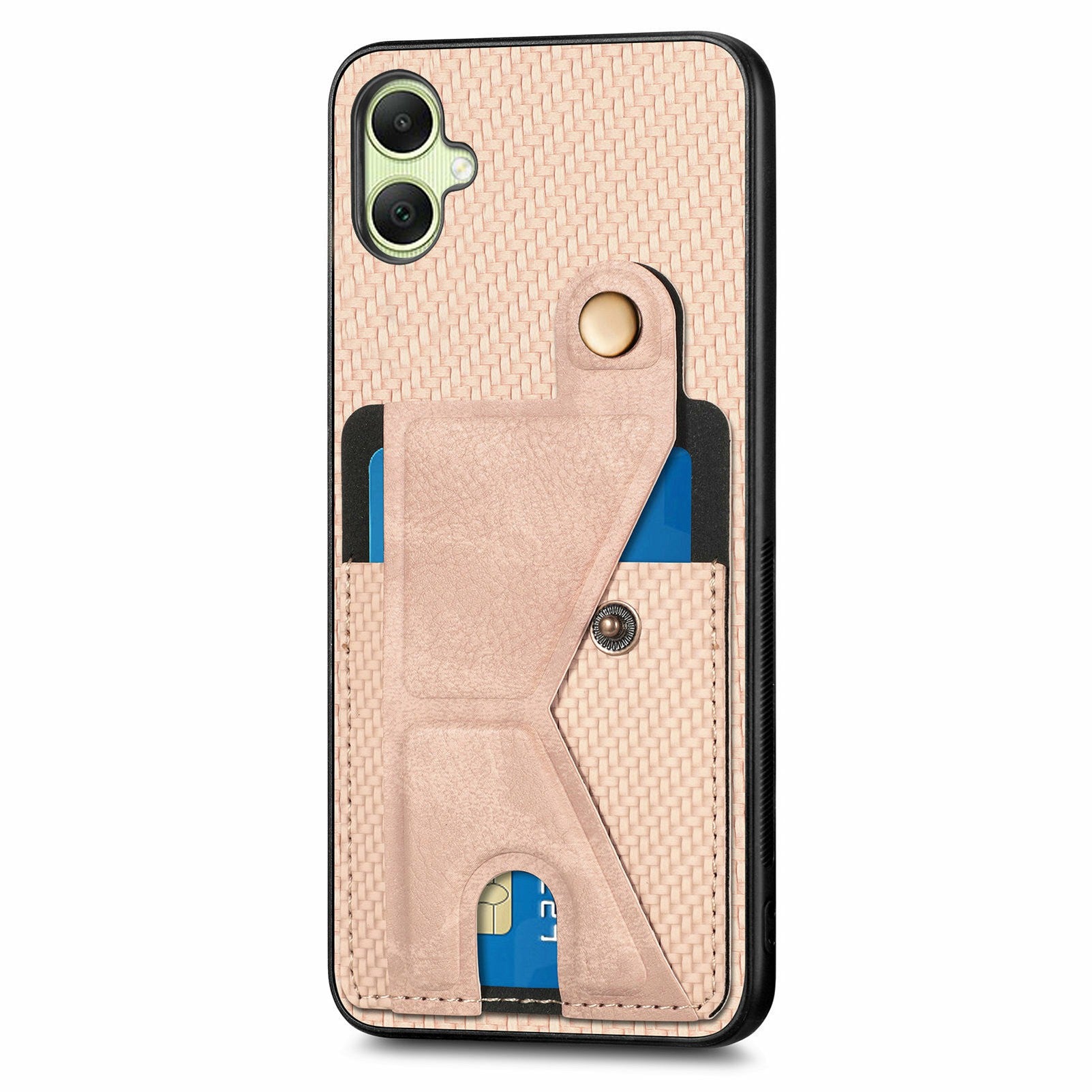 For Samsung Galaxy A06 Case K-Shaped Kickstand Leather+PC+TPU Phone Cover - Apricot