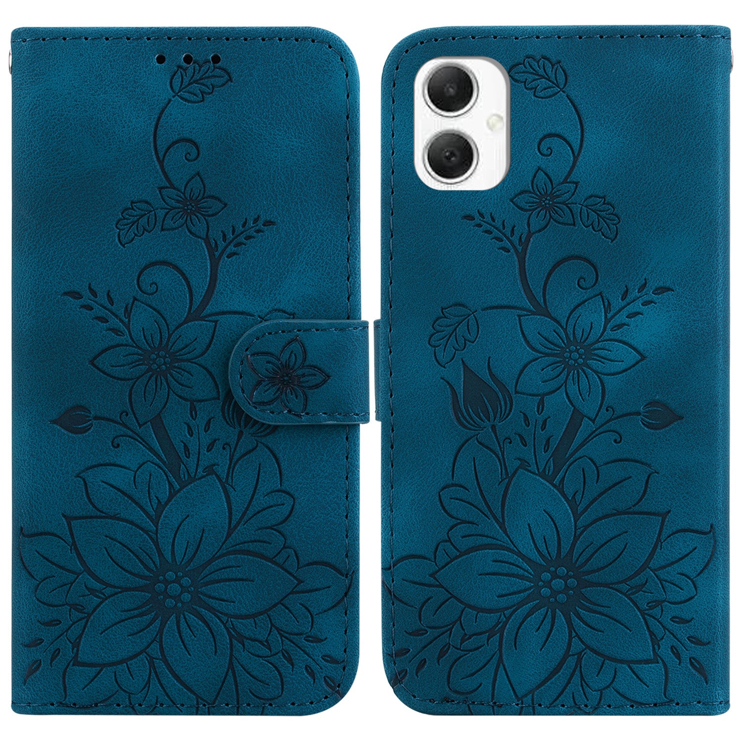 For Samsung Galaxy A06 Case Lily Flower Imprint Leather Phone Cover with Stand - Dark Blue