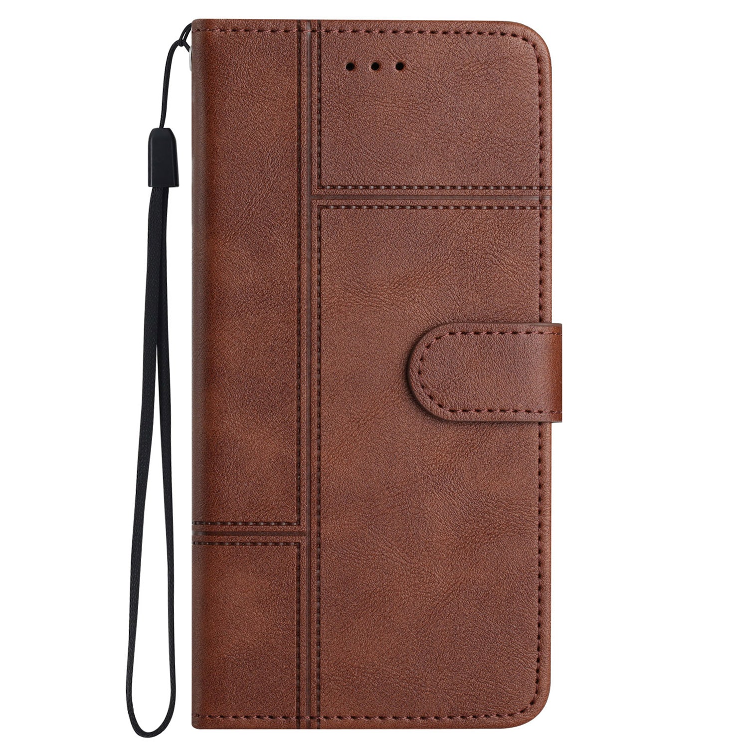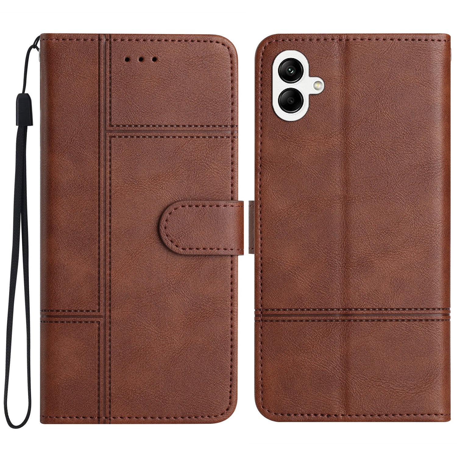 For Samsung Galaxy A06 Case Line Imprinted PU Leather Wallet Phone Cover - Coffee