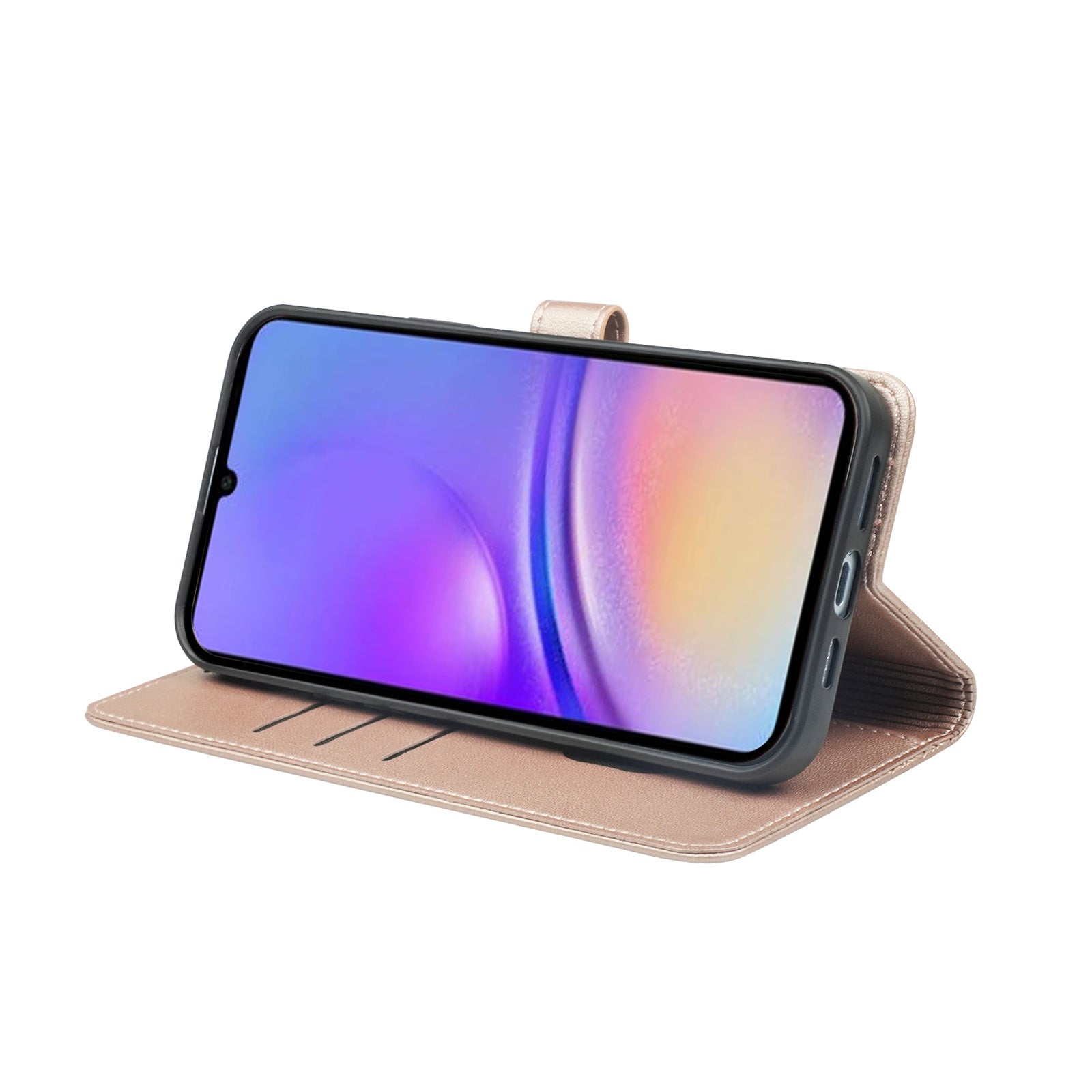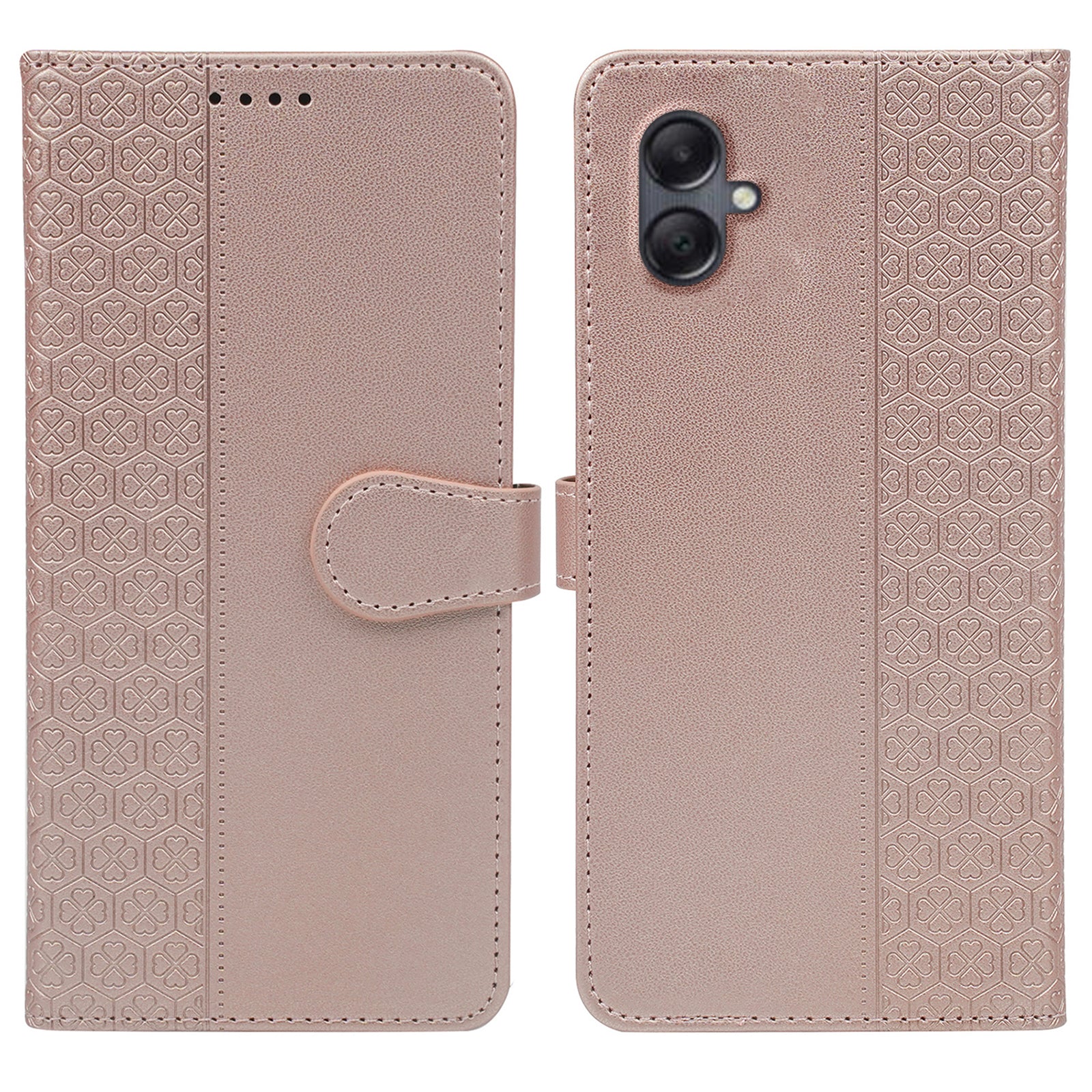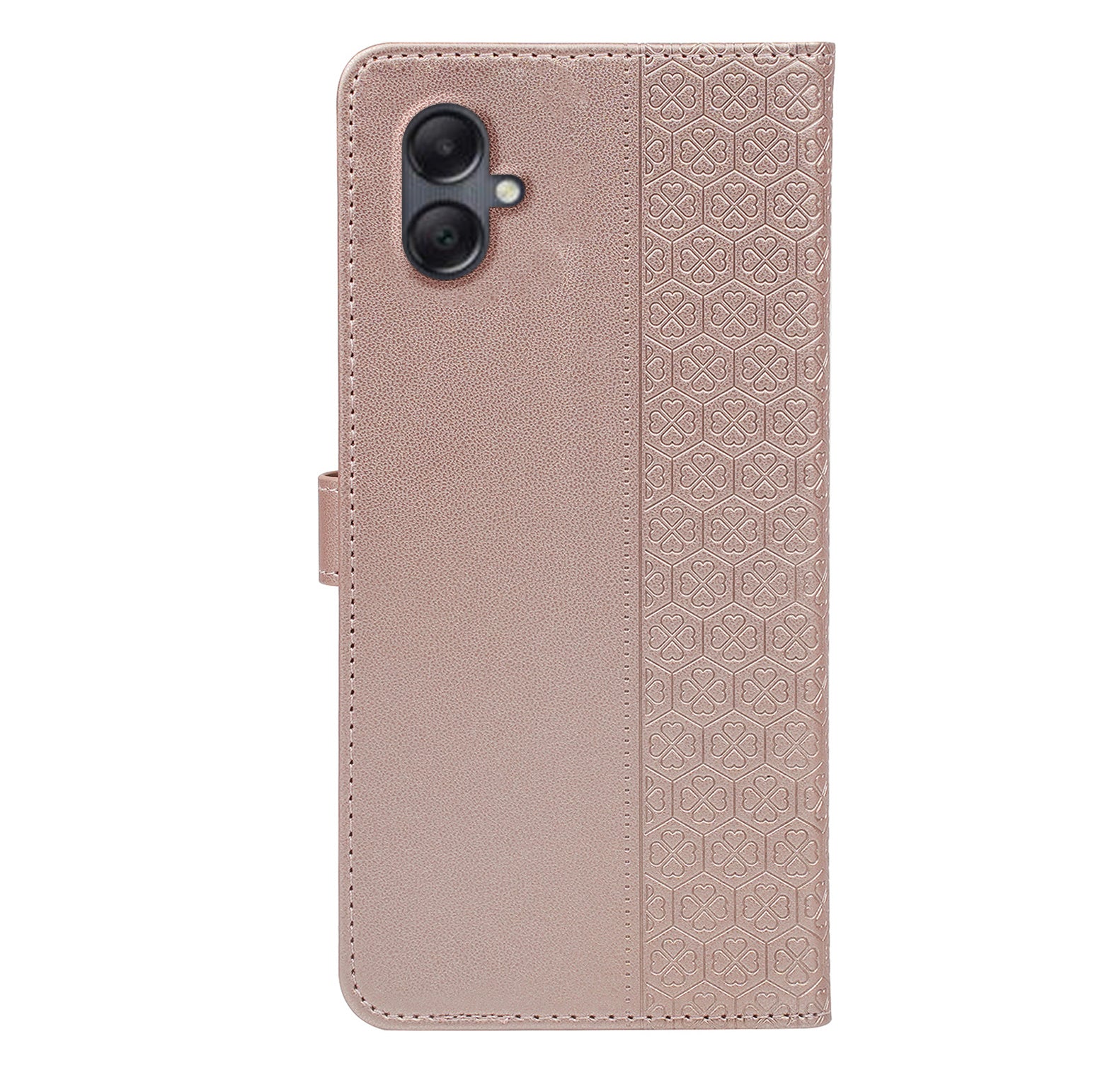 For Samsung Galaxy A06 Case Magnetic Clasp Four-Leaf Clover Leather Phone Cover - Rose Gold