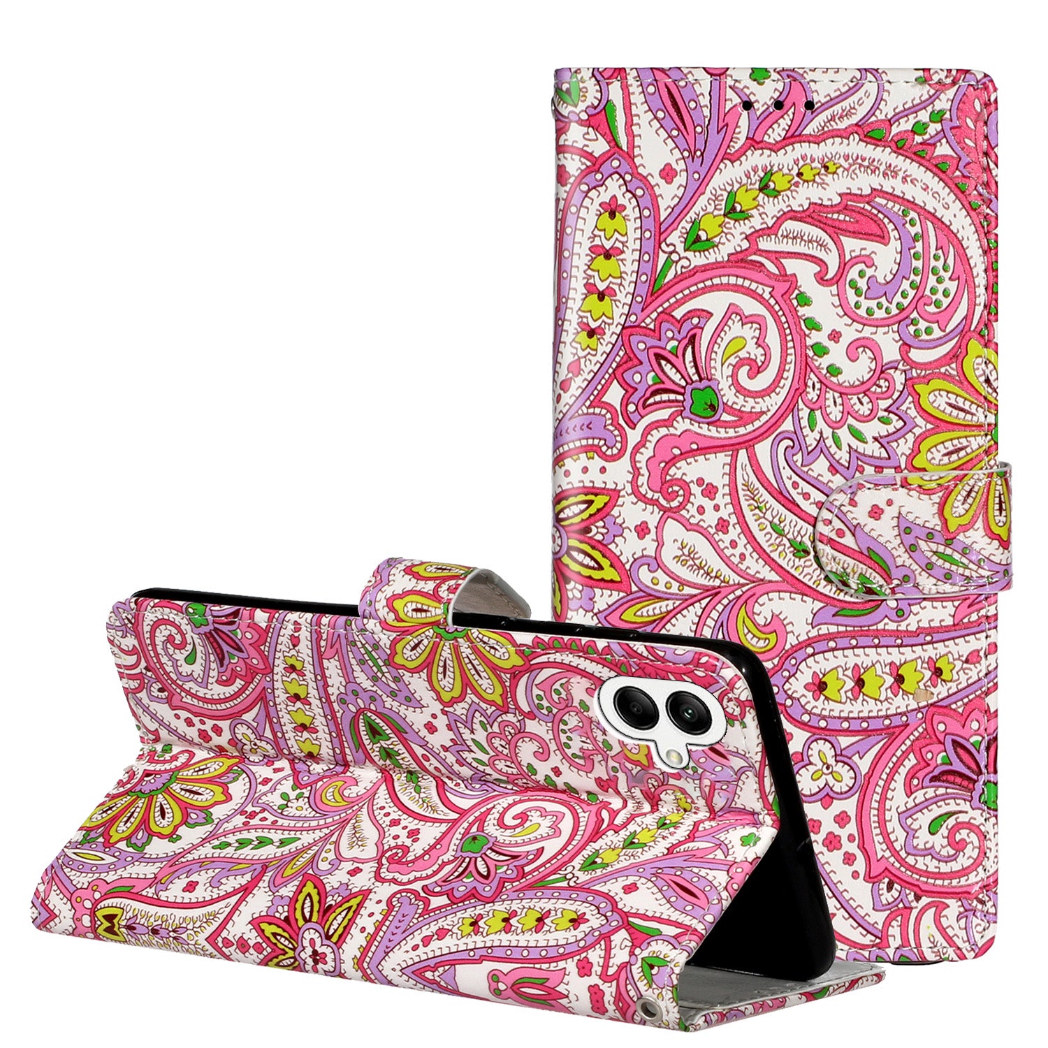 For Samsung Galaxy A06 Case Pattern Leather Wallet Phone Cover with Card Holder - Flower