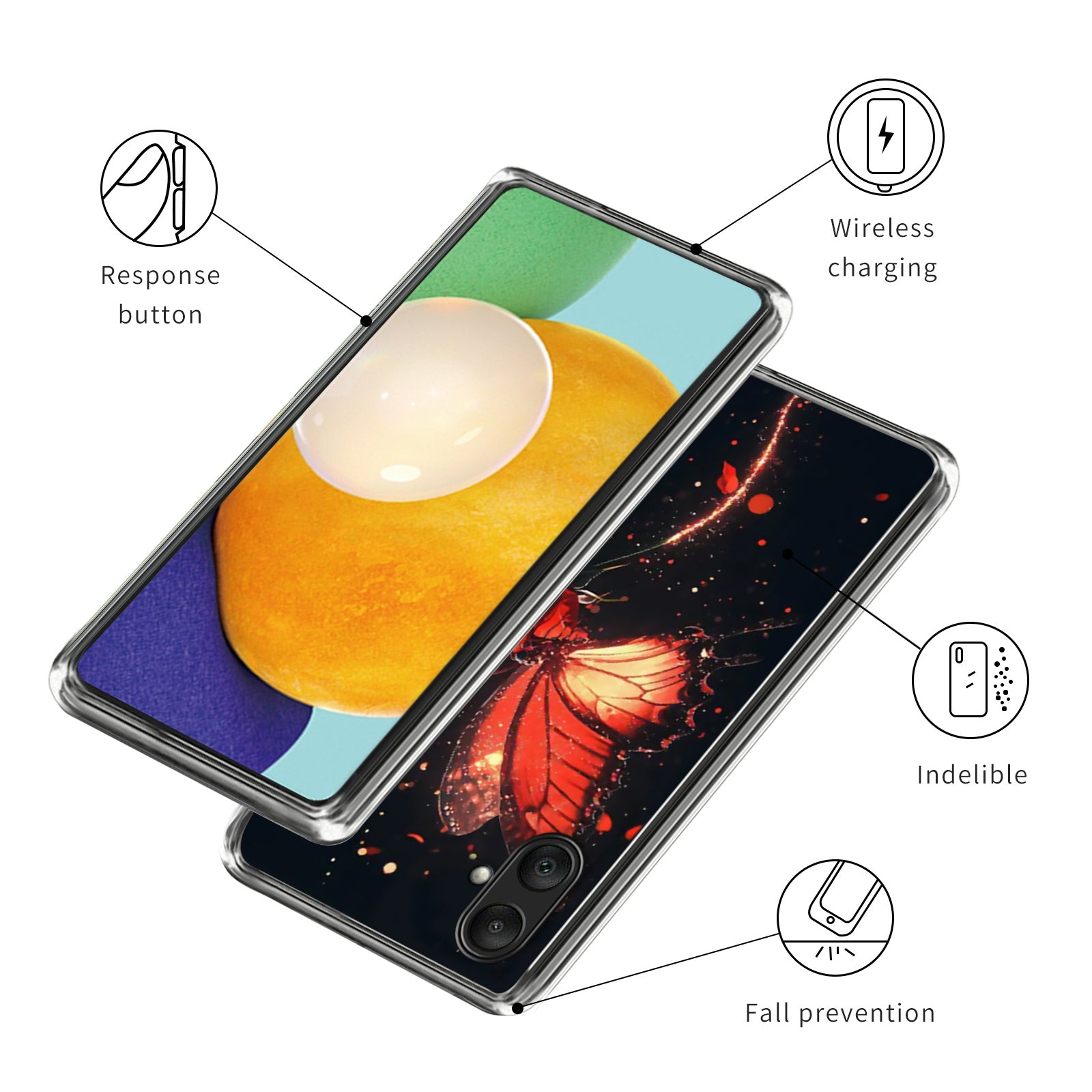 For Samsung Galaxy A06 Case Pattern Printed Shockproof TPU Phone Cover - Red Butterfly Rose