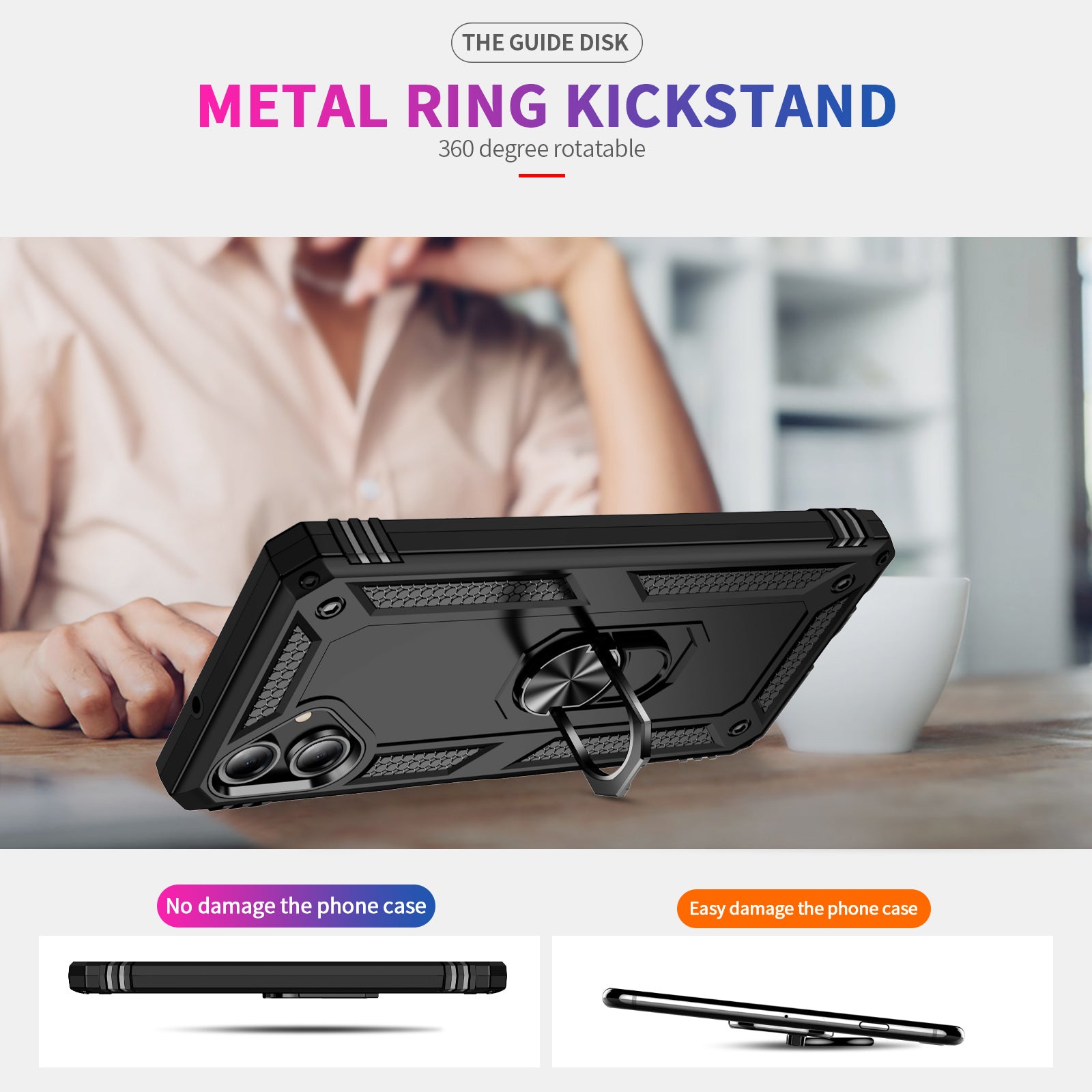 For Samsung Galaxy A06 Case PC+TPU Phone Cover with Rotary Ring Kickstand - Black