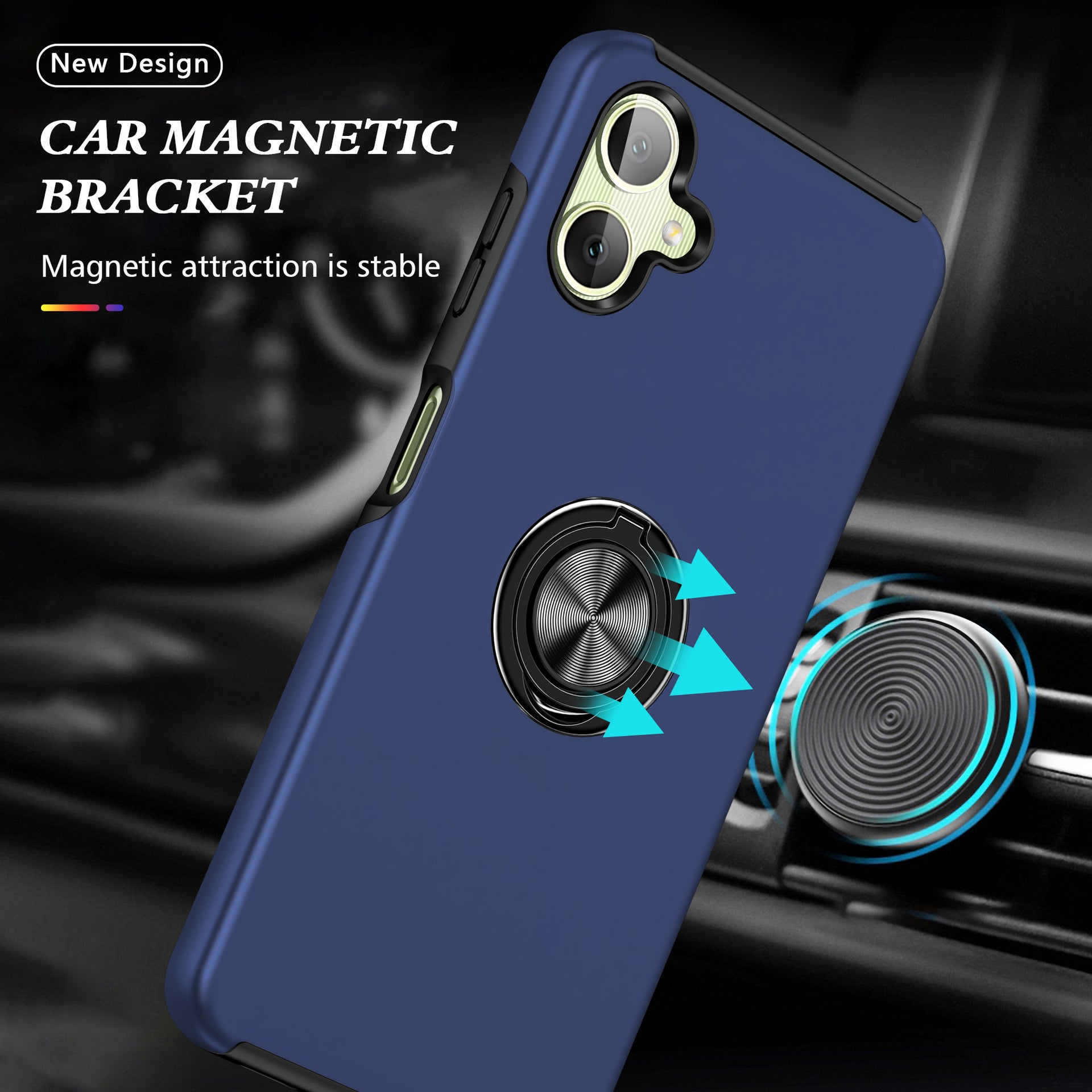 For Samsung Galaxy A06 Case PC+TPU Phone Cover with Rotatable Ring Holder - Blue