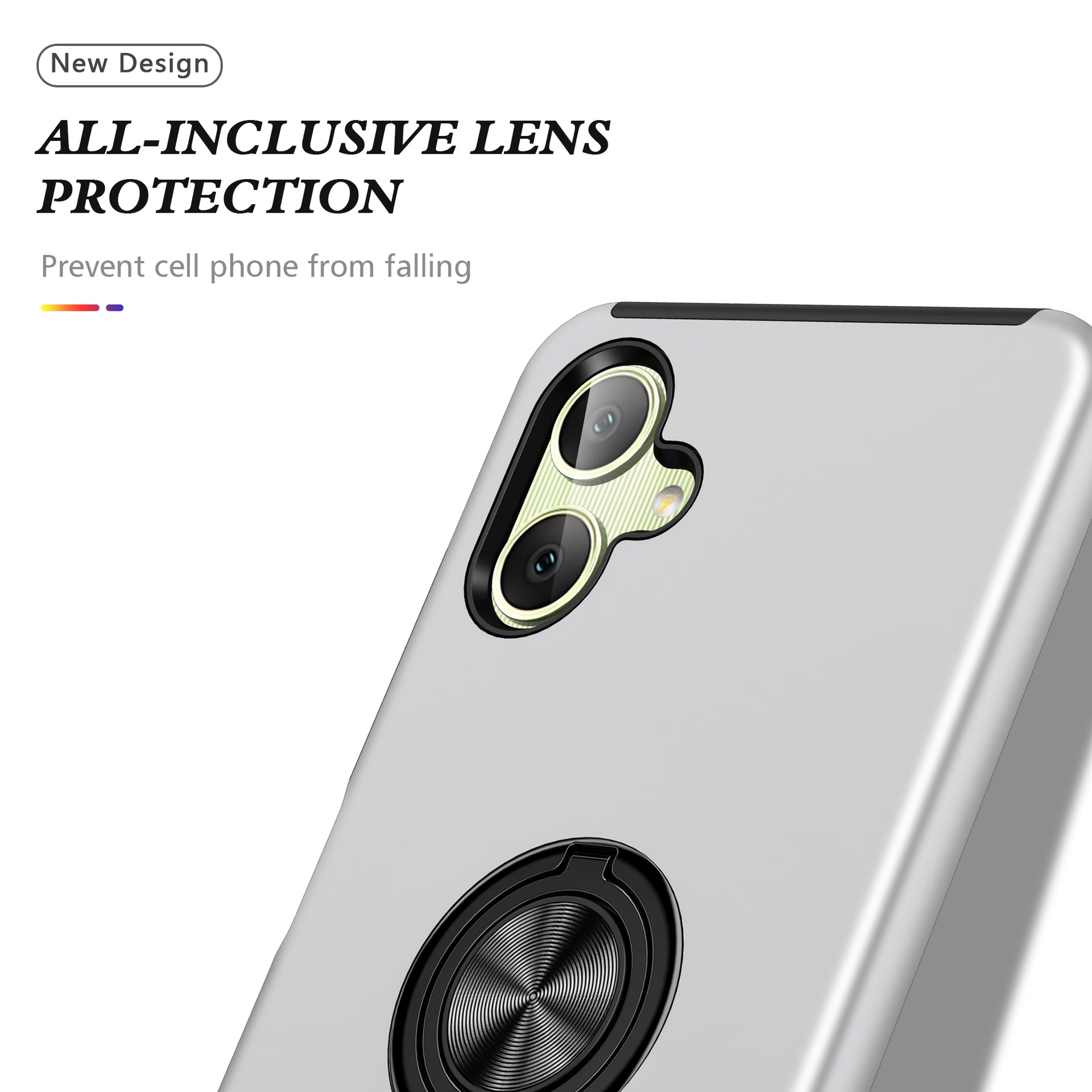 For Samsung Galaxy A06 Case PC+TPU Phone Cover with Rotatable Ring Holder - Silver