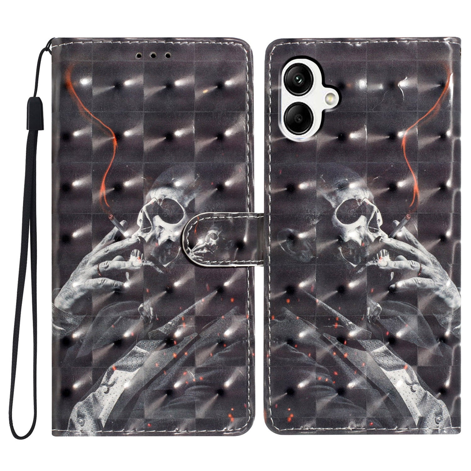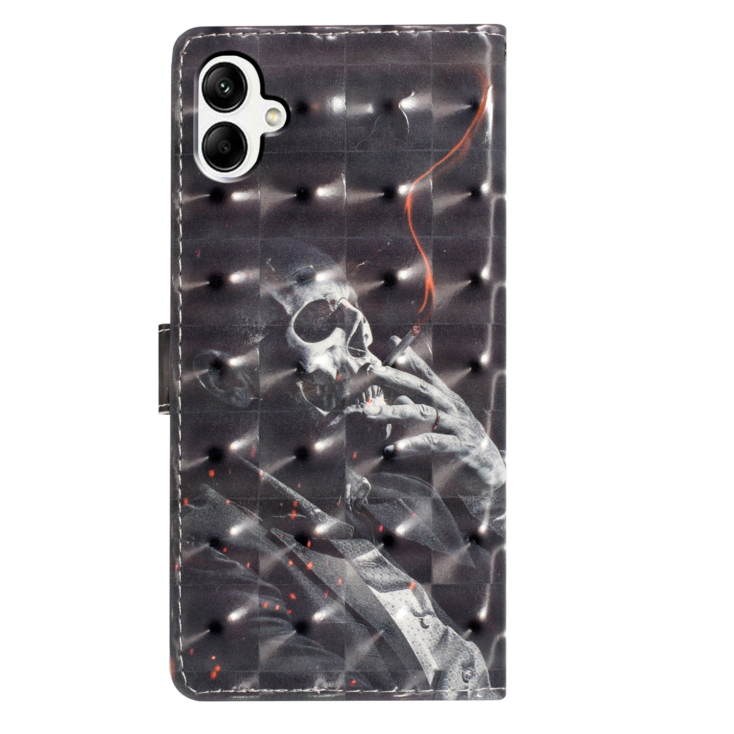 For Samsung Galaxy A06 Case PU Leather 3D Pattern Printing Wallet Phone Cover - Smoking Skeleton