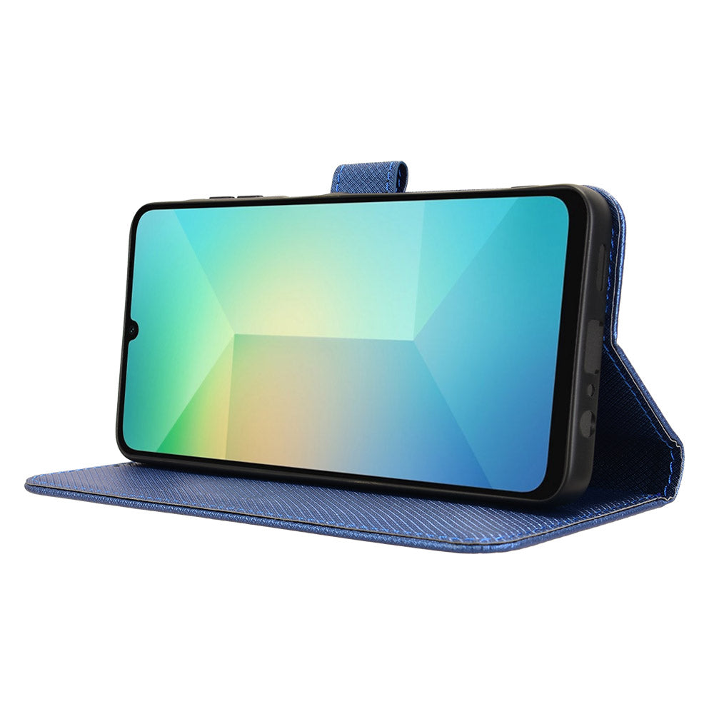For Samsung Galaxy A06 Case PU Leather Diamond Texture Wallet Phone Cover - Blue