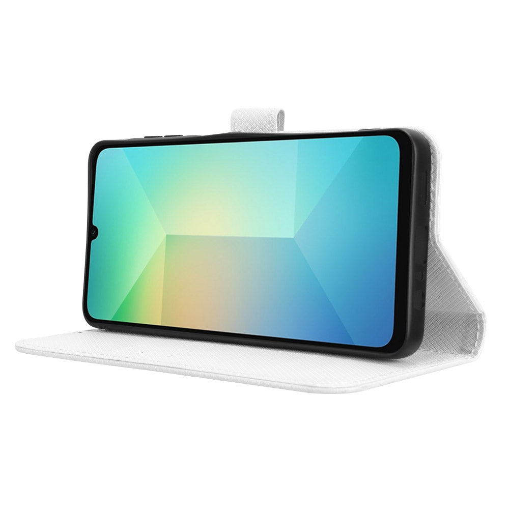 For Samsung Galaxy A06 Case PU Leather Diamond Texture Wallet Phone Cover - White