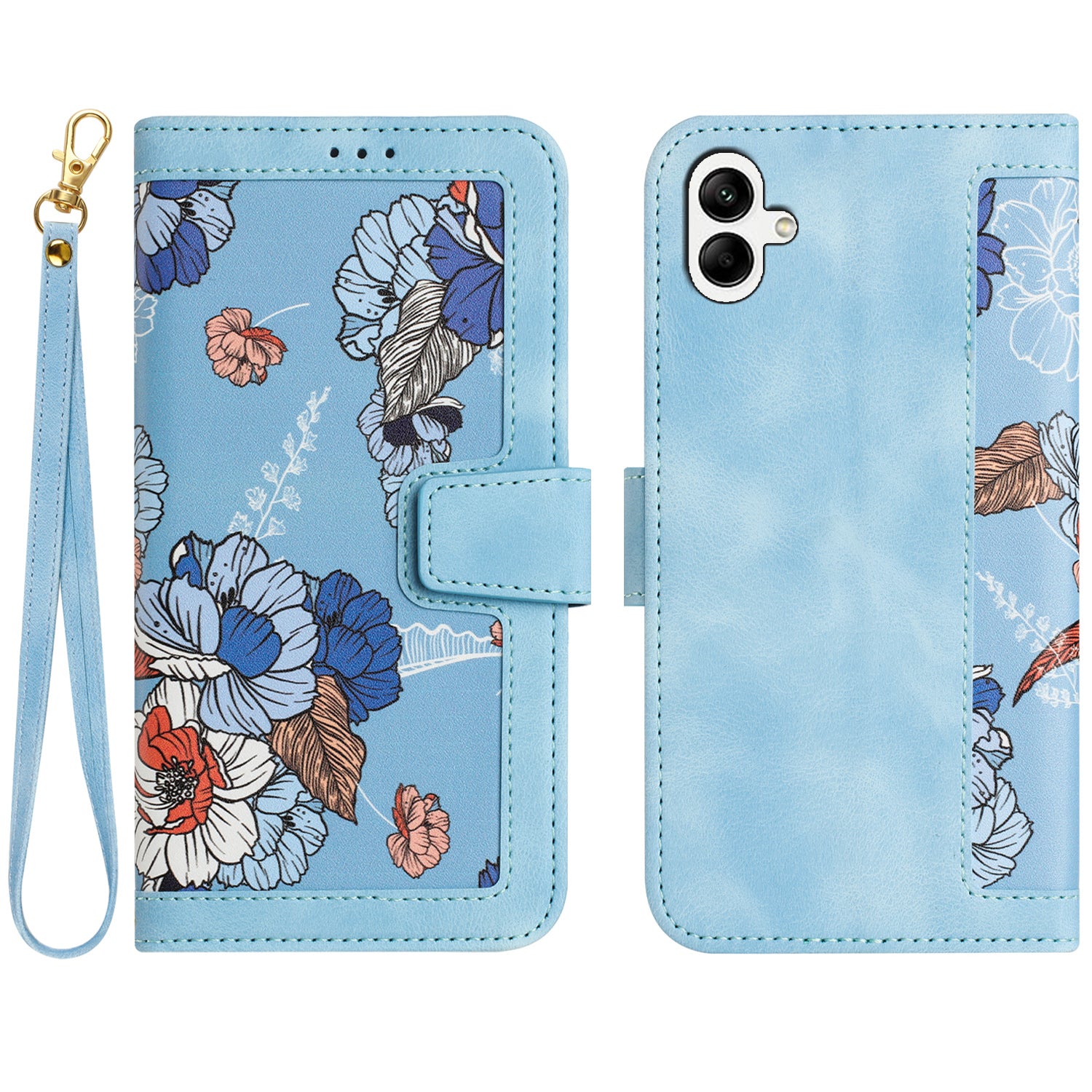 For Samsung Galaxy A06 Case PU Leather Floral Phone Cover with Card Slots - Baby Blue