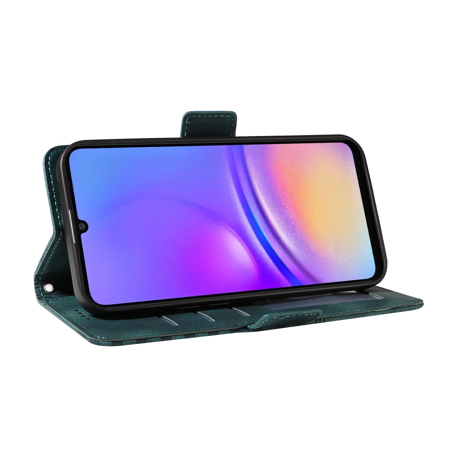For Samsung Galaxy A06 Case PU Leather Phone Cover Rhombus Starry Imprinted - Green