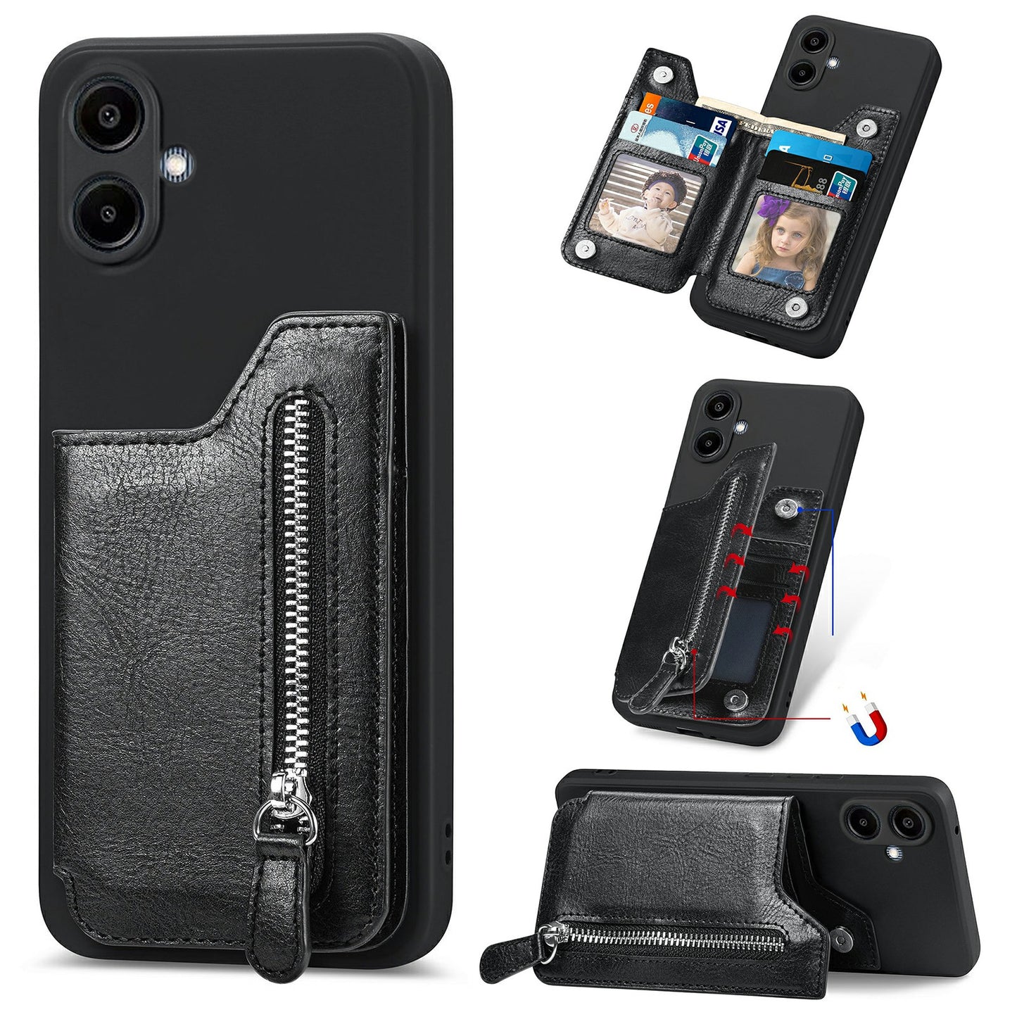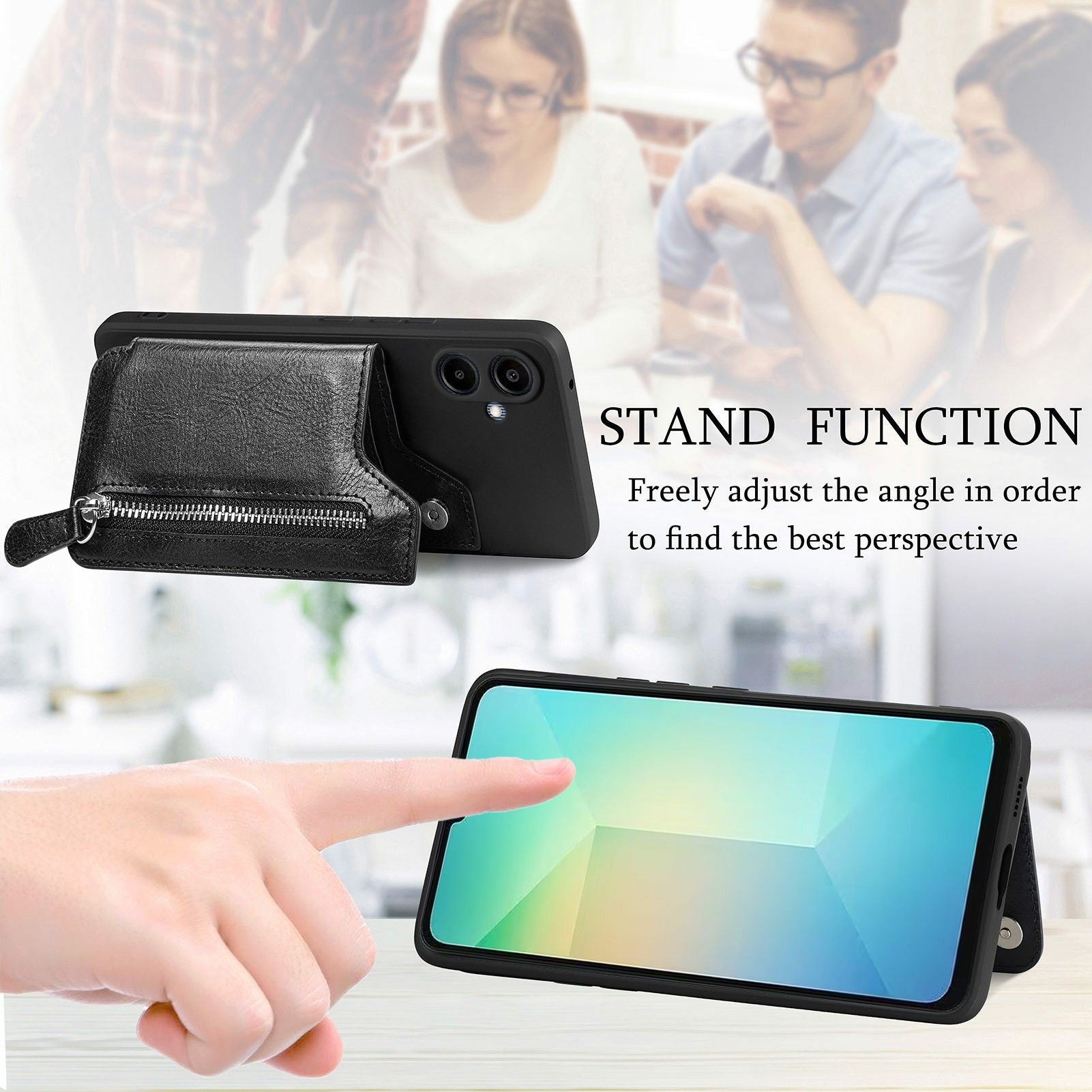 •Functional Storage: Card slots and a zipper pocket on the back provide convenient storage for essential cards, cash, coins, and more