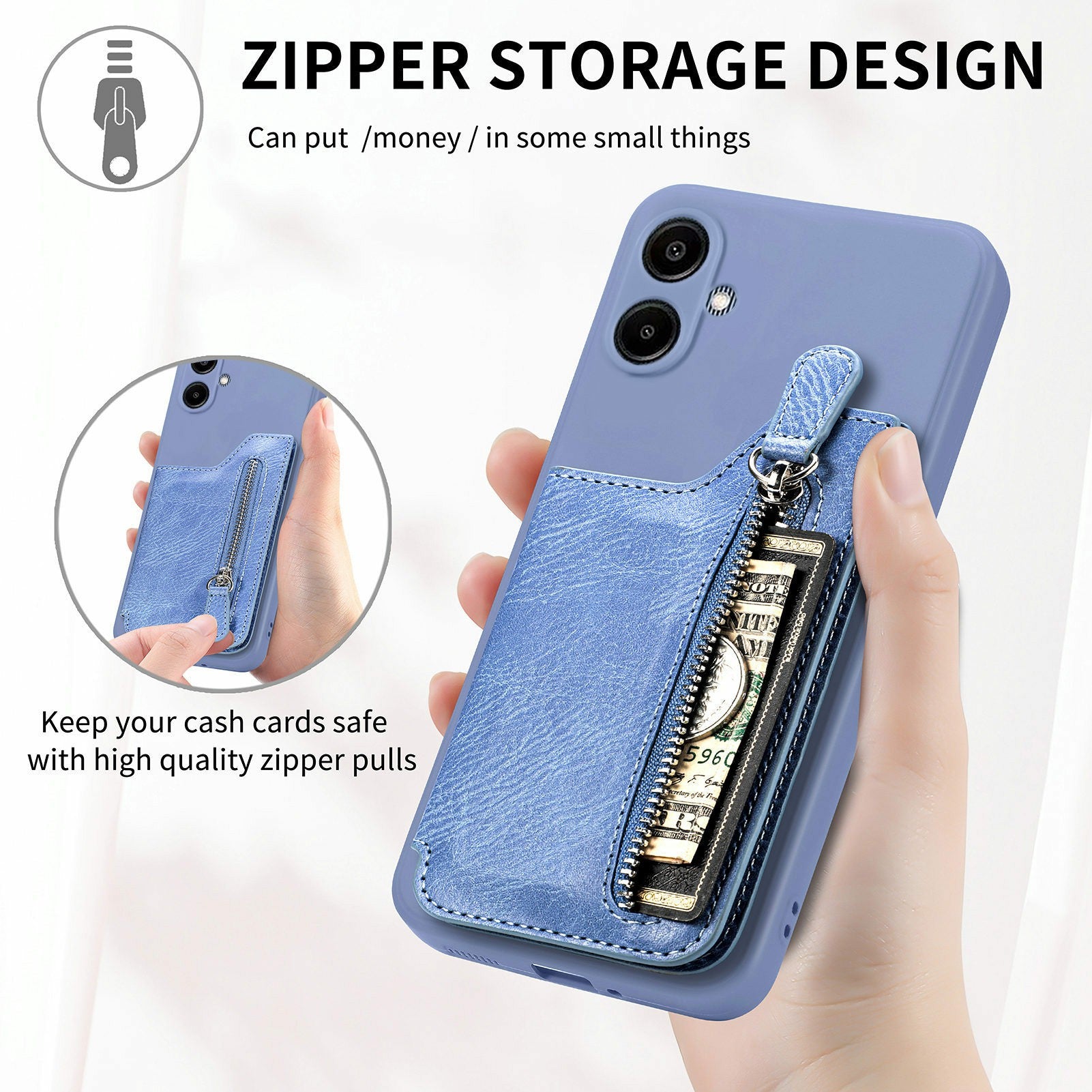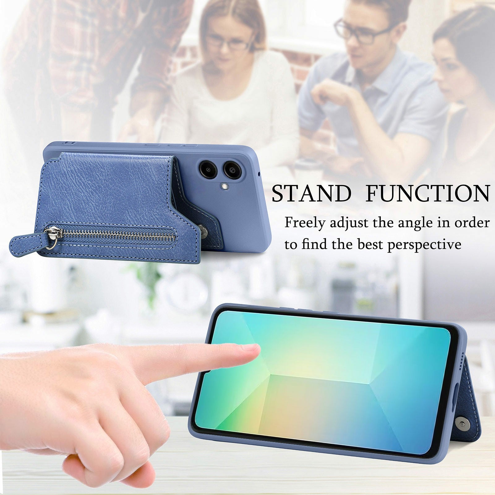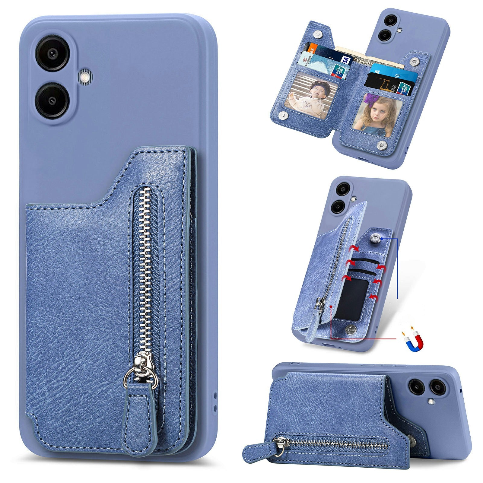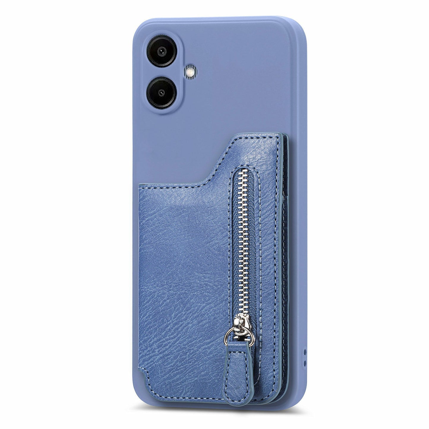 For Samsung Galaxy A06 Case PU Leather+TPU Phone Cover with Zipper Pocket Wallet - Blue