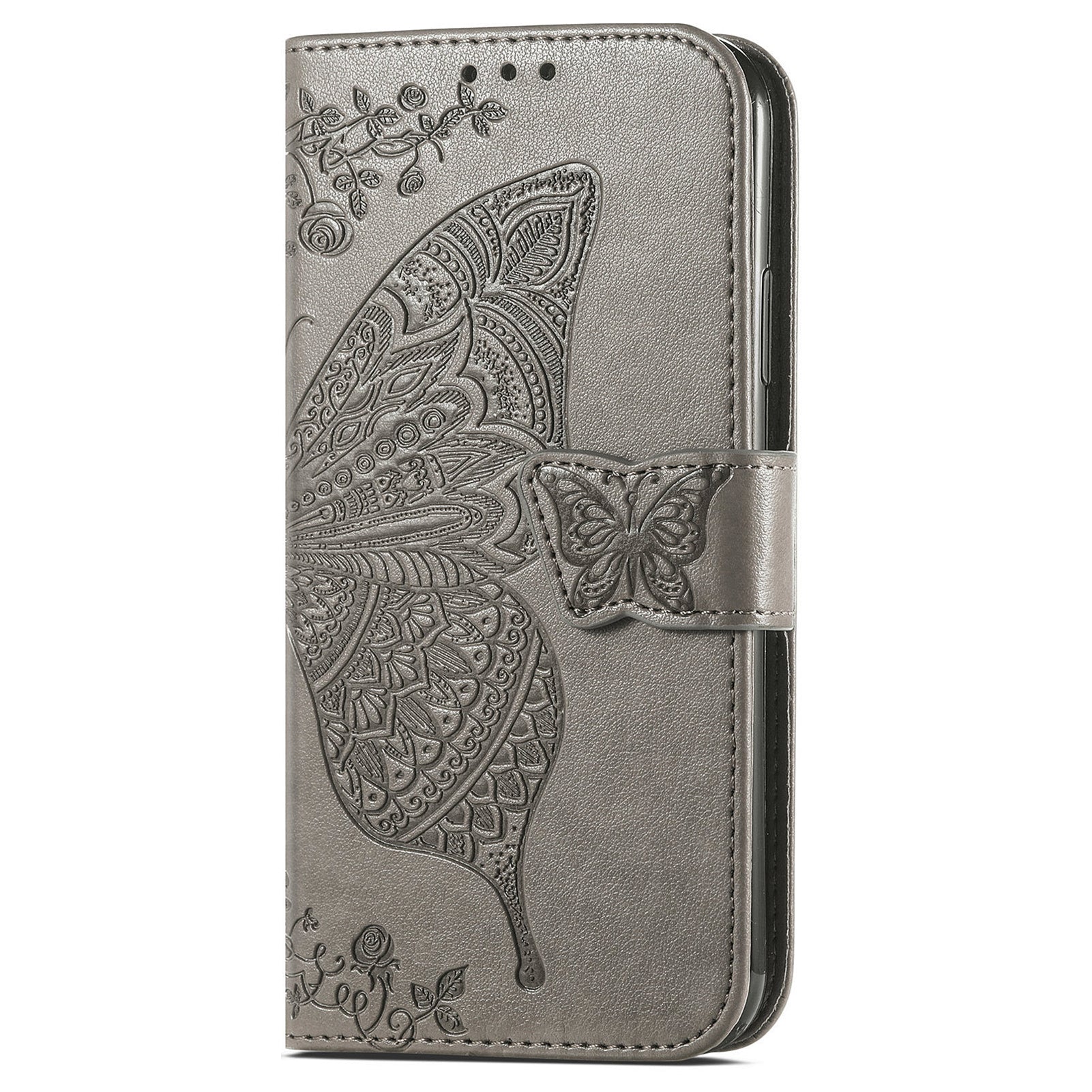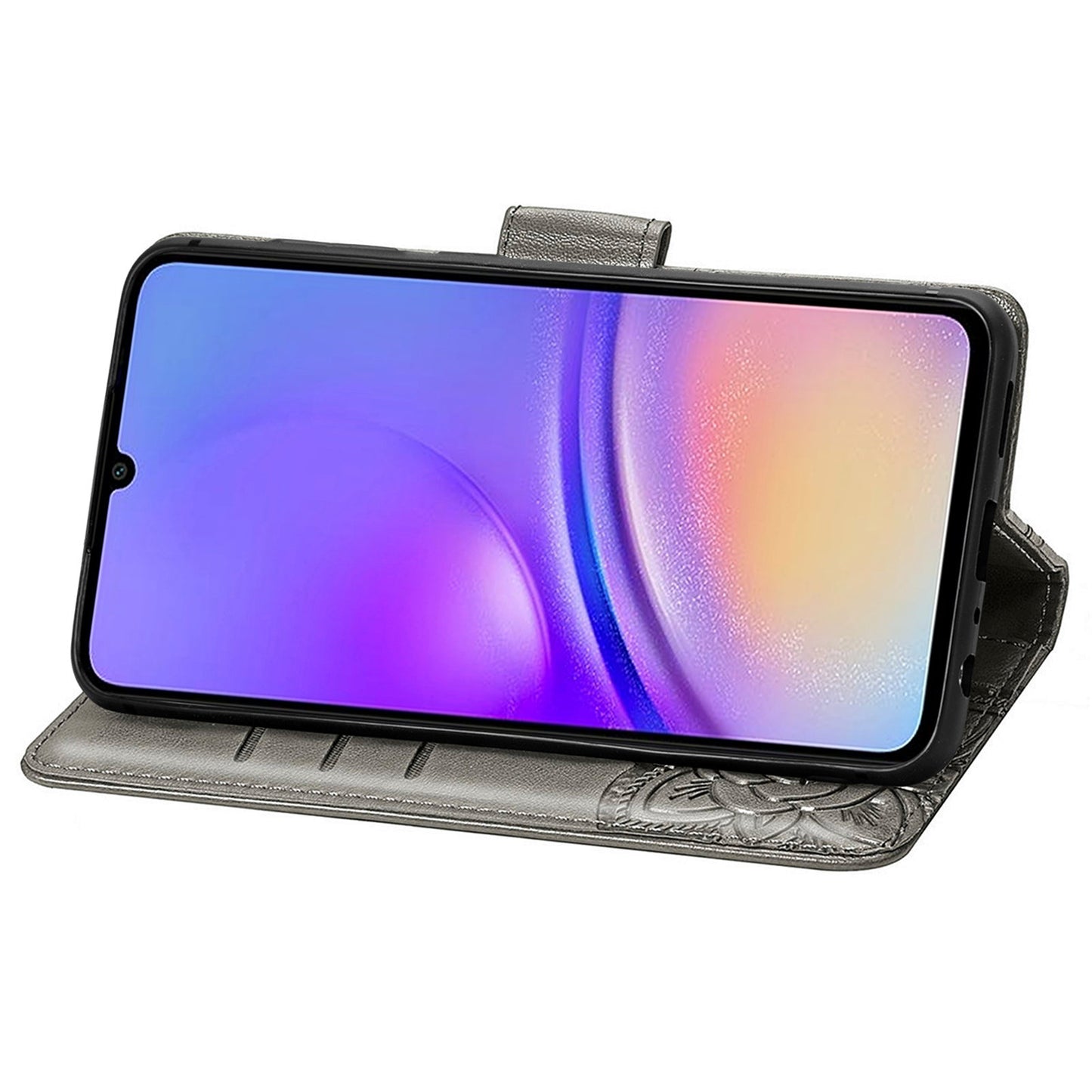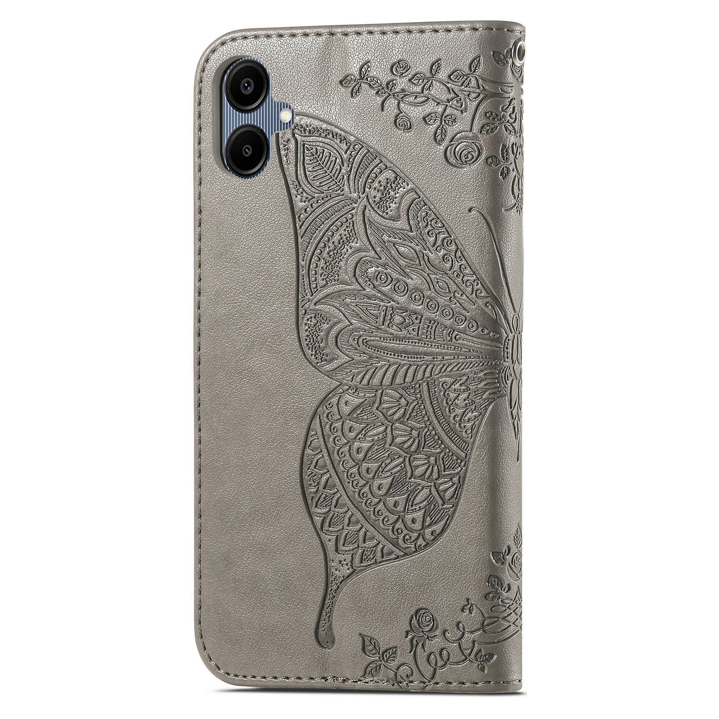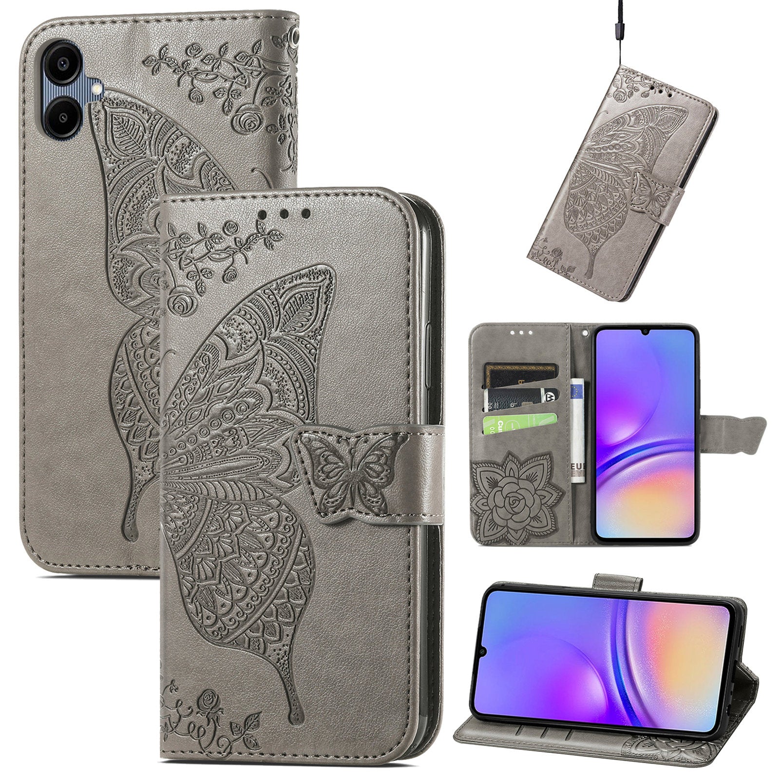 For Samsung Galaxy A06 Case PU Leather Wallet Phone Cover Butterfly Pattern - Grey