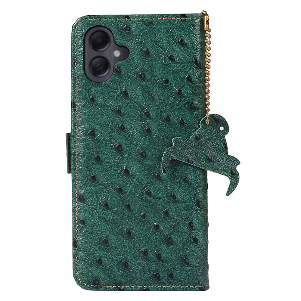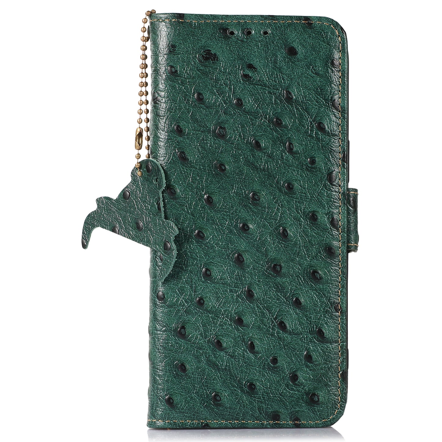 •Premium Material: Made of premium genuine cow leather with delicate ostrich texture and TPU offers a good hand feeling, and comes with a small chain decoration