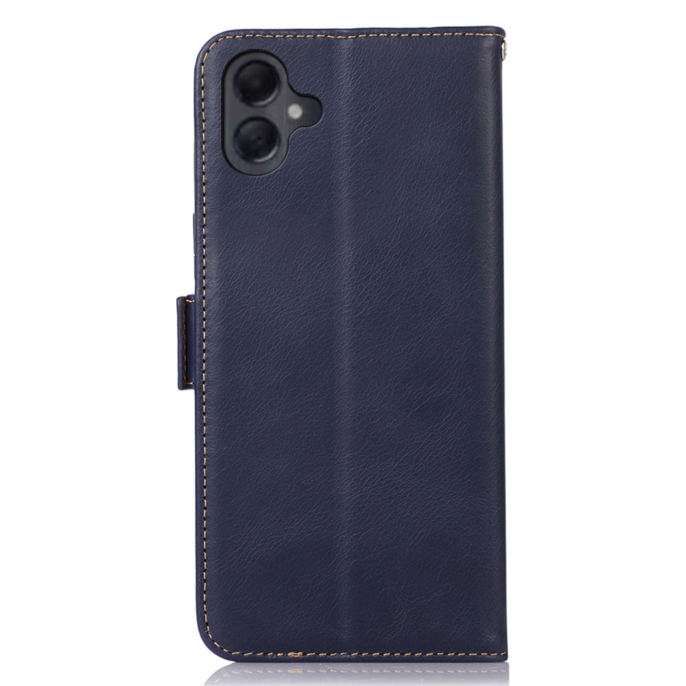 For Samsung Galaxy A06 Case RFID Blocking Genuine Cow Leather Wallet Phone Cover - Blue