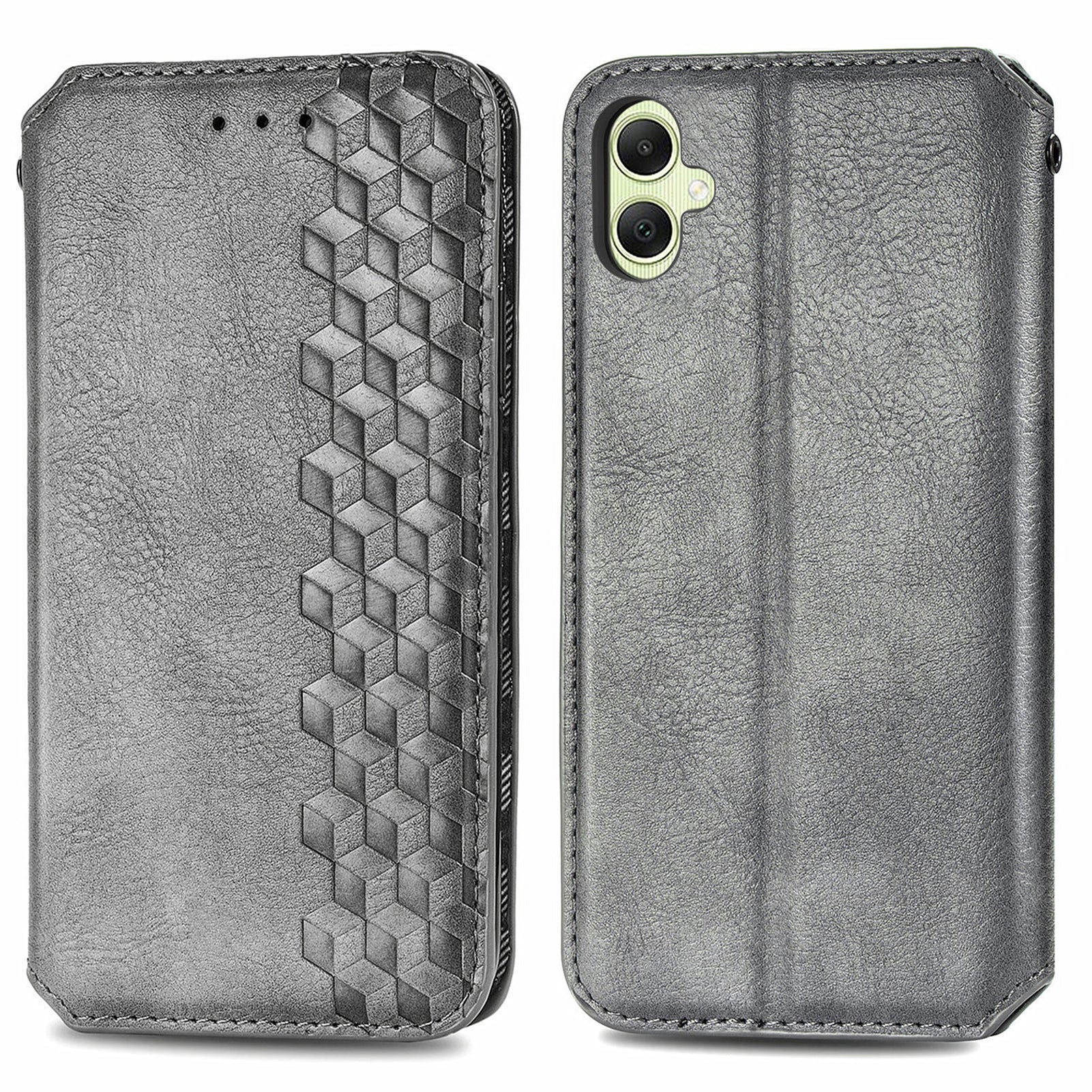 For Samsung Galaxy A06 Case Rhombus Imprint PU Leather Wallet Phone Cover - Grey