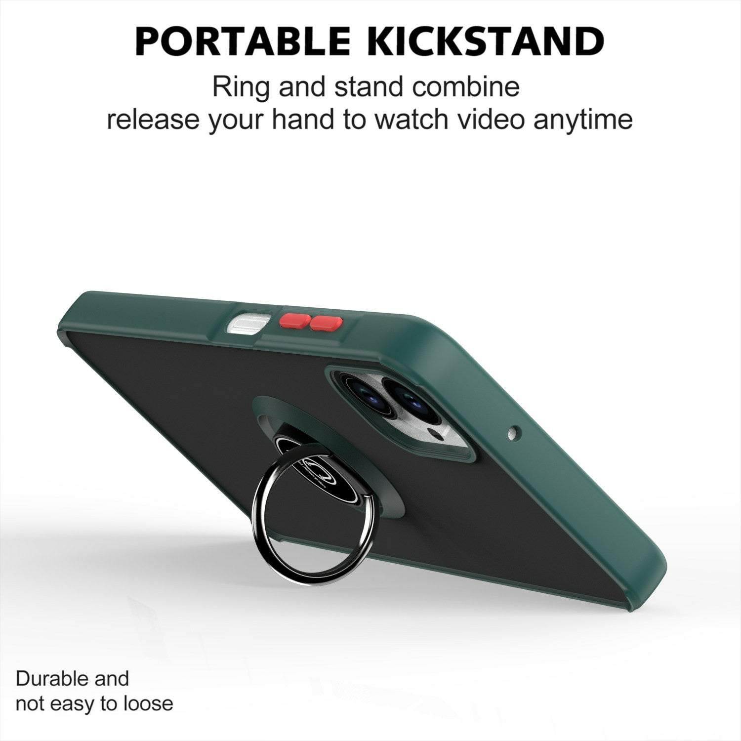 For Samsung Galaxy A06 Case Ring Holder Kickstand TPU+Acrylic Phone Cover - Blackish Green