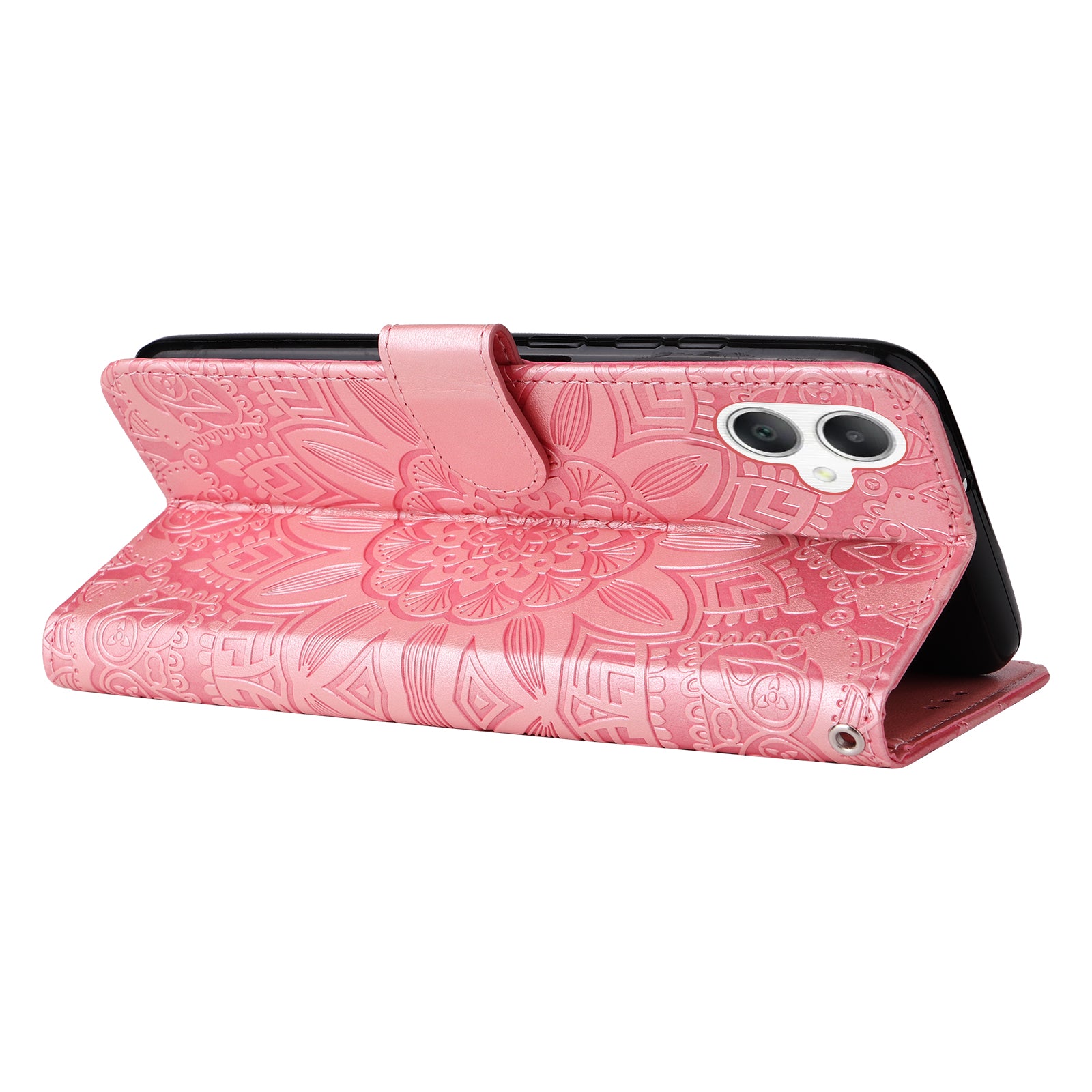For Samsung Galaxy A06 Case Sunflower Imprint Leather Wallet Phone Cover - Pink