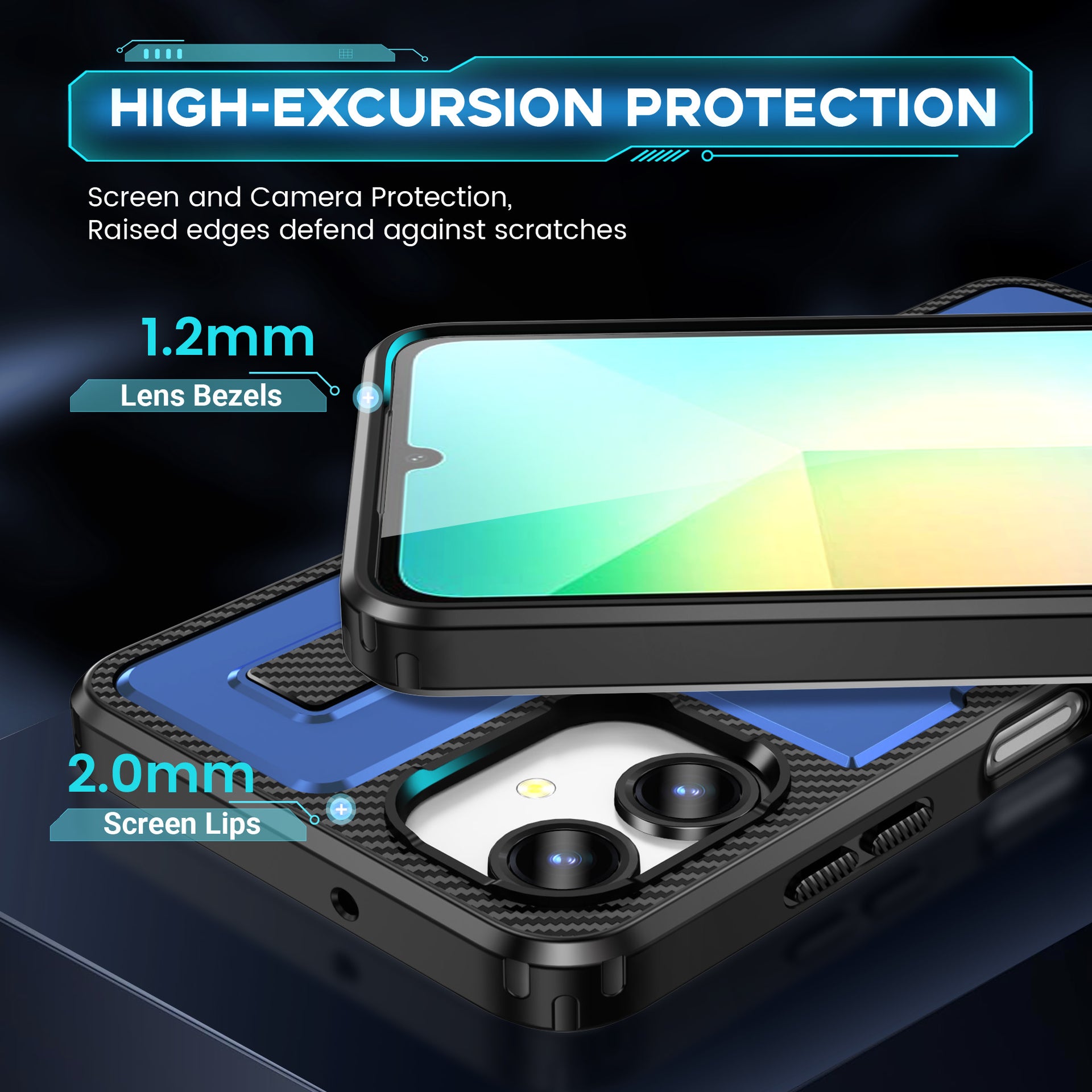 For Samsung Galaxy A06 Case TPU+PC Kickstand Phone Cover with Silicone Finger Strap - Blue