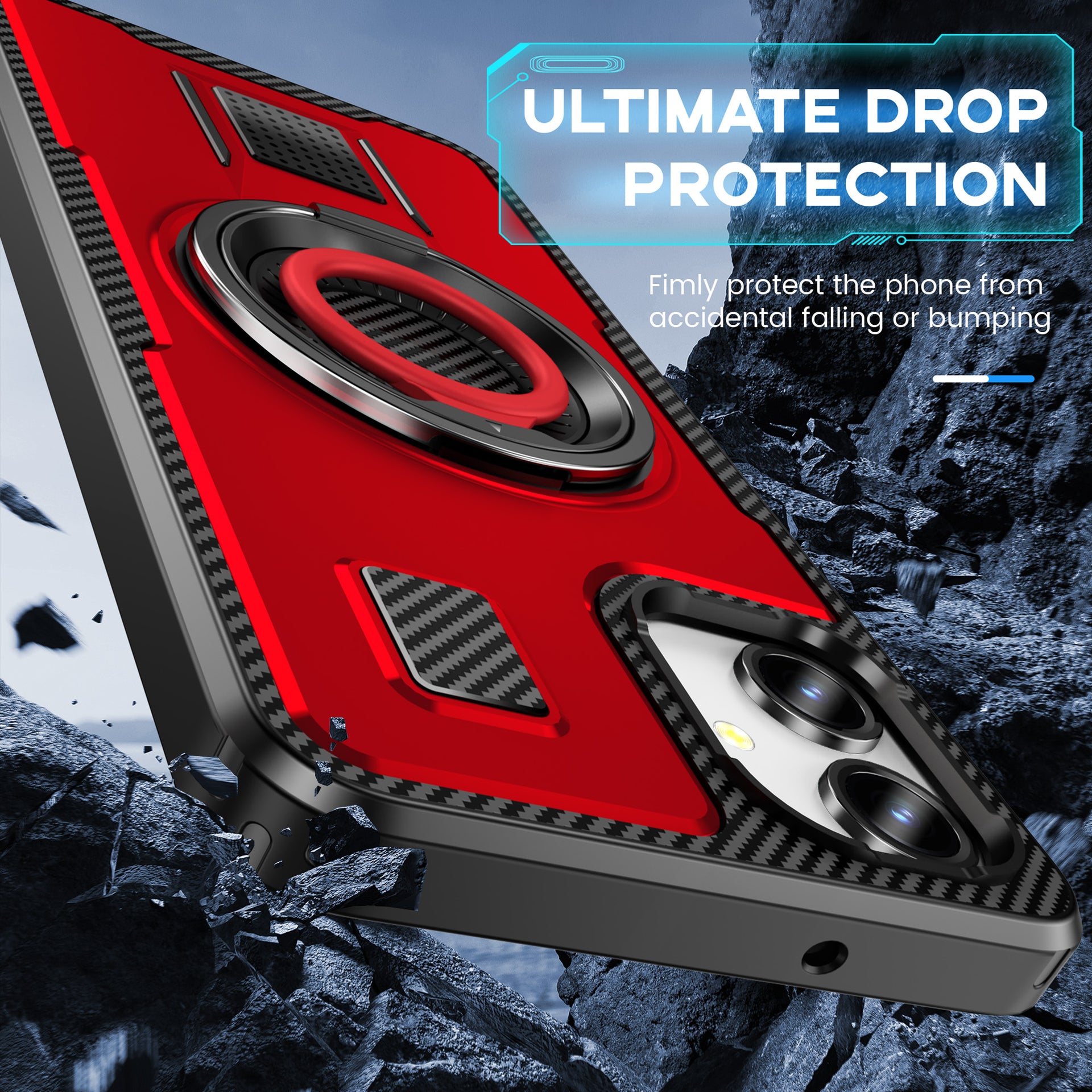 For Samsung Galaxy A06 Case TPU+PC Kickstand Phone Cover with Silicone Finger Strap - Red