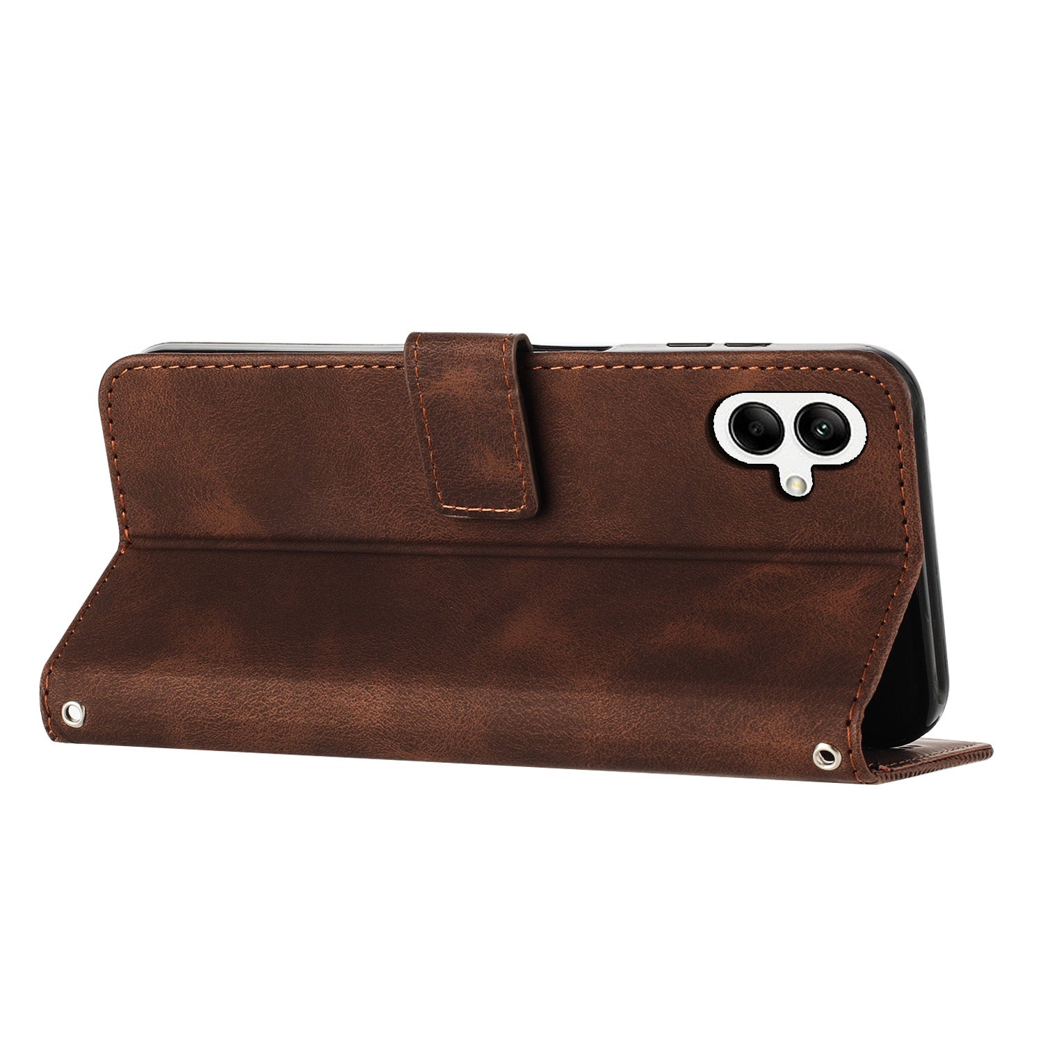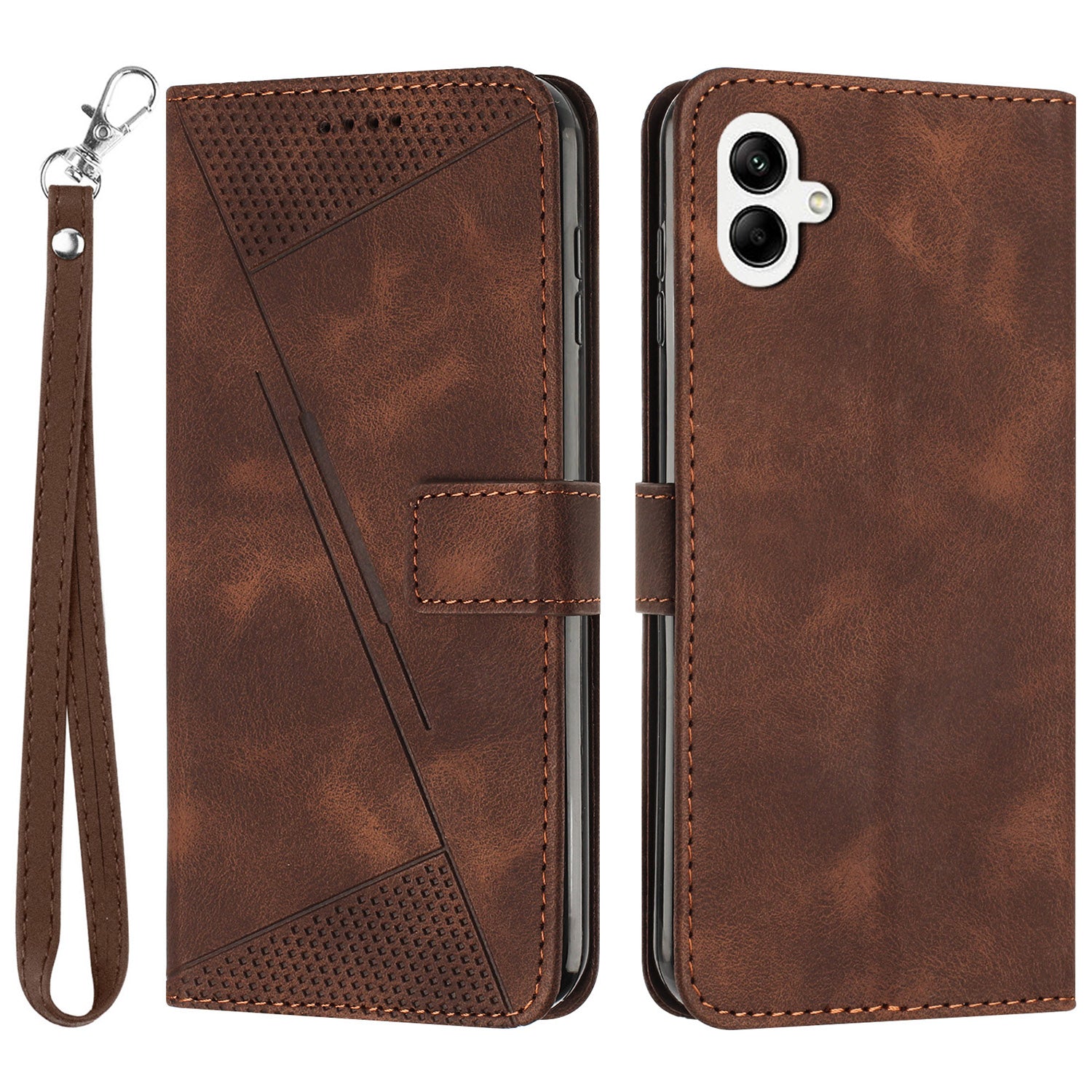 For Samsung Galaxy A06 Case Triangle Pattern Leather Phone Cover Wallet with Hand Strap - Brown