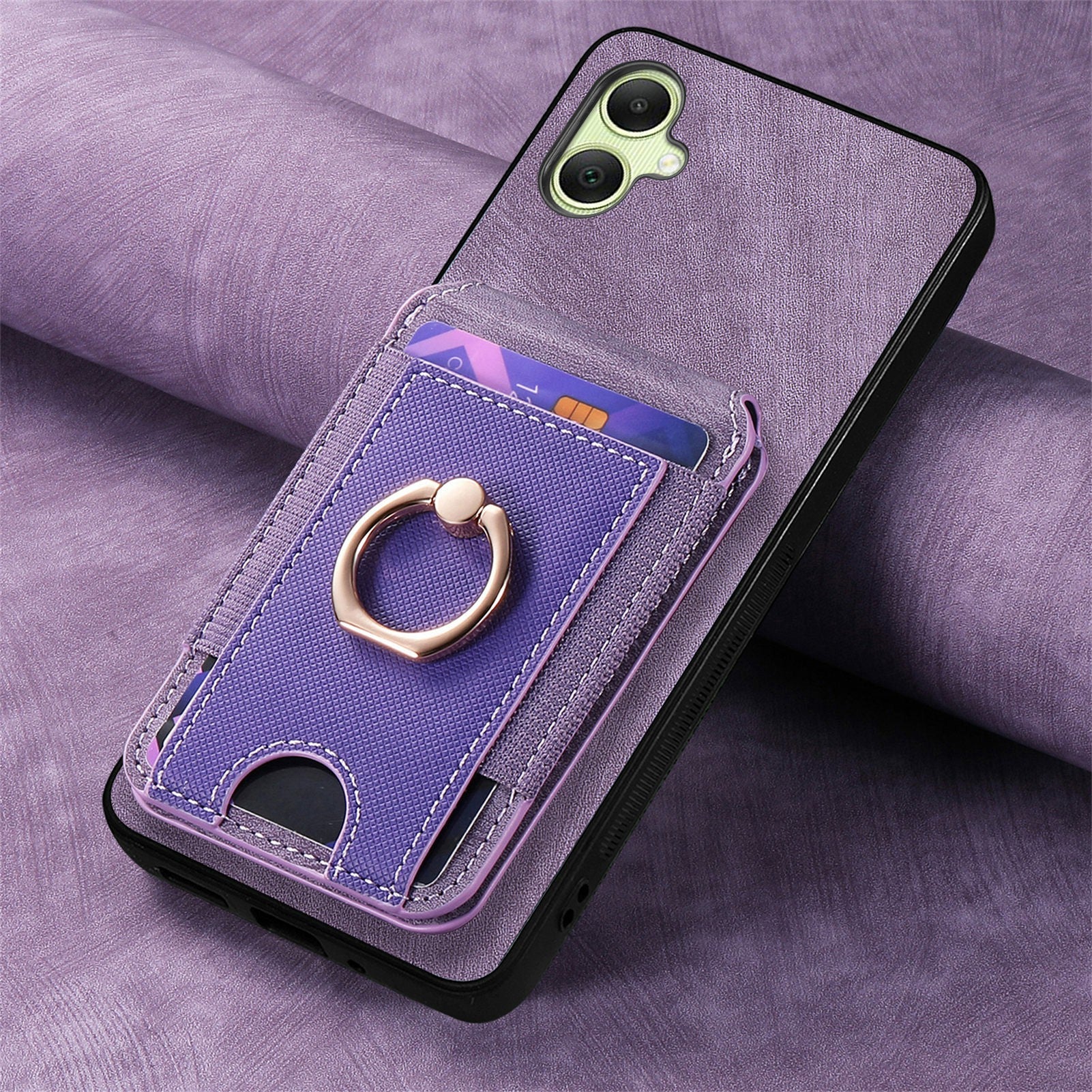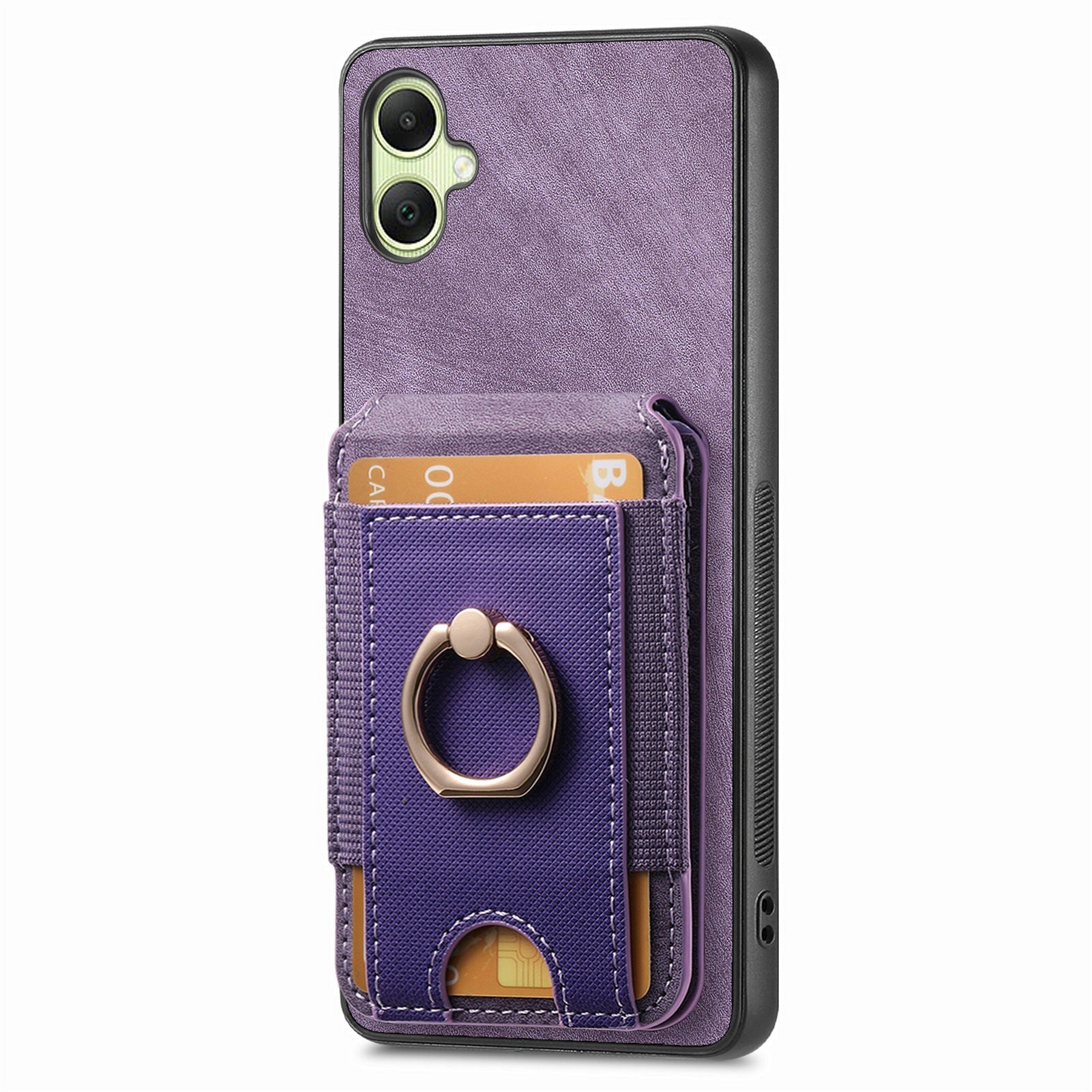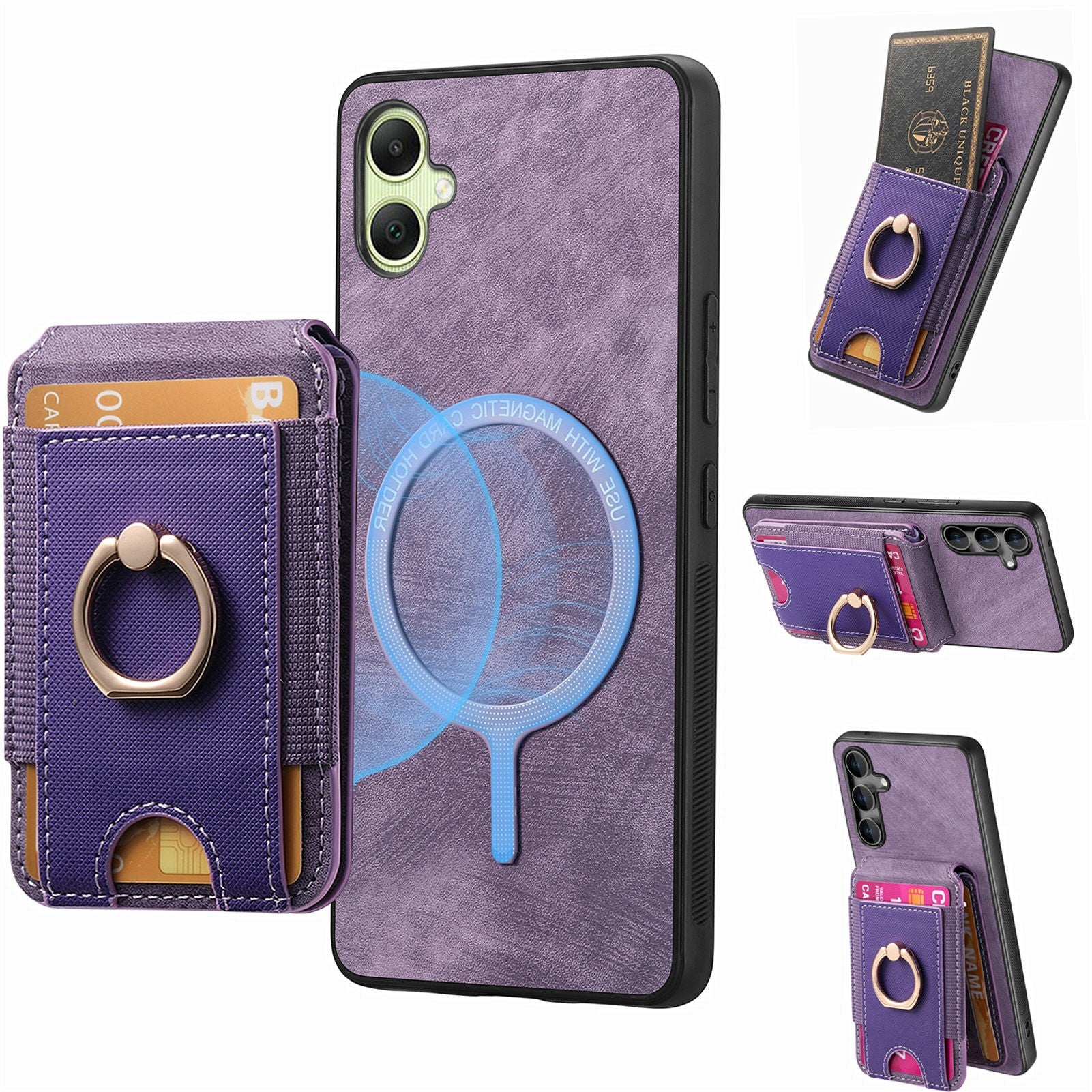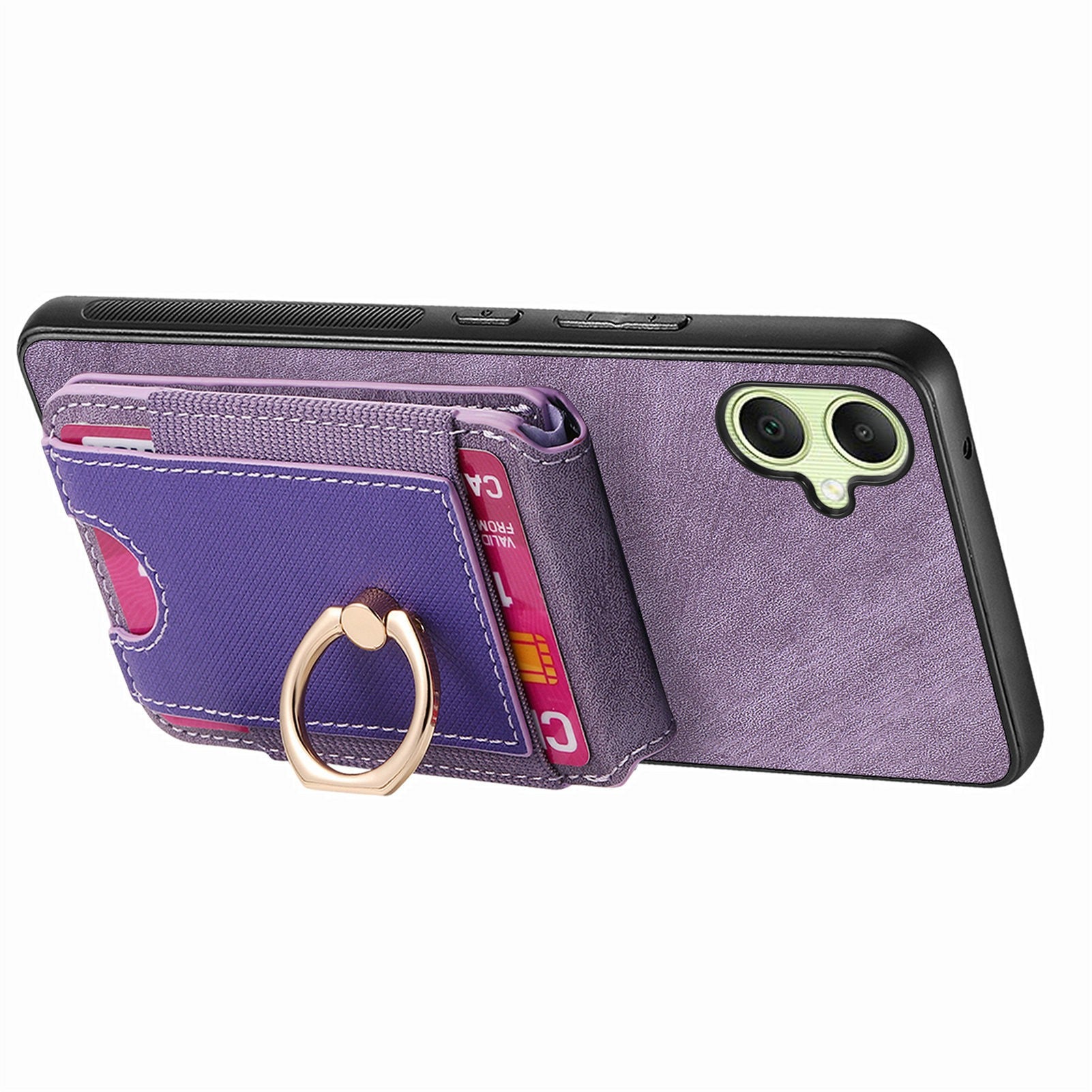 For Samsung Galaxy A06 Case Vertical Flip Card Holder Ring Holder Kickstand Leather Back Cover - Purple