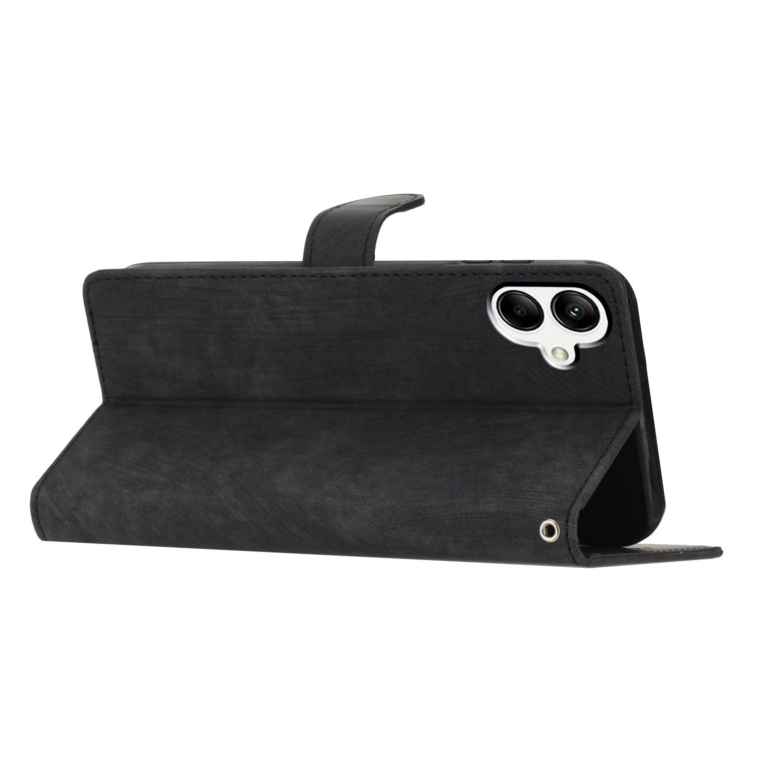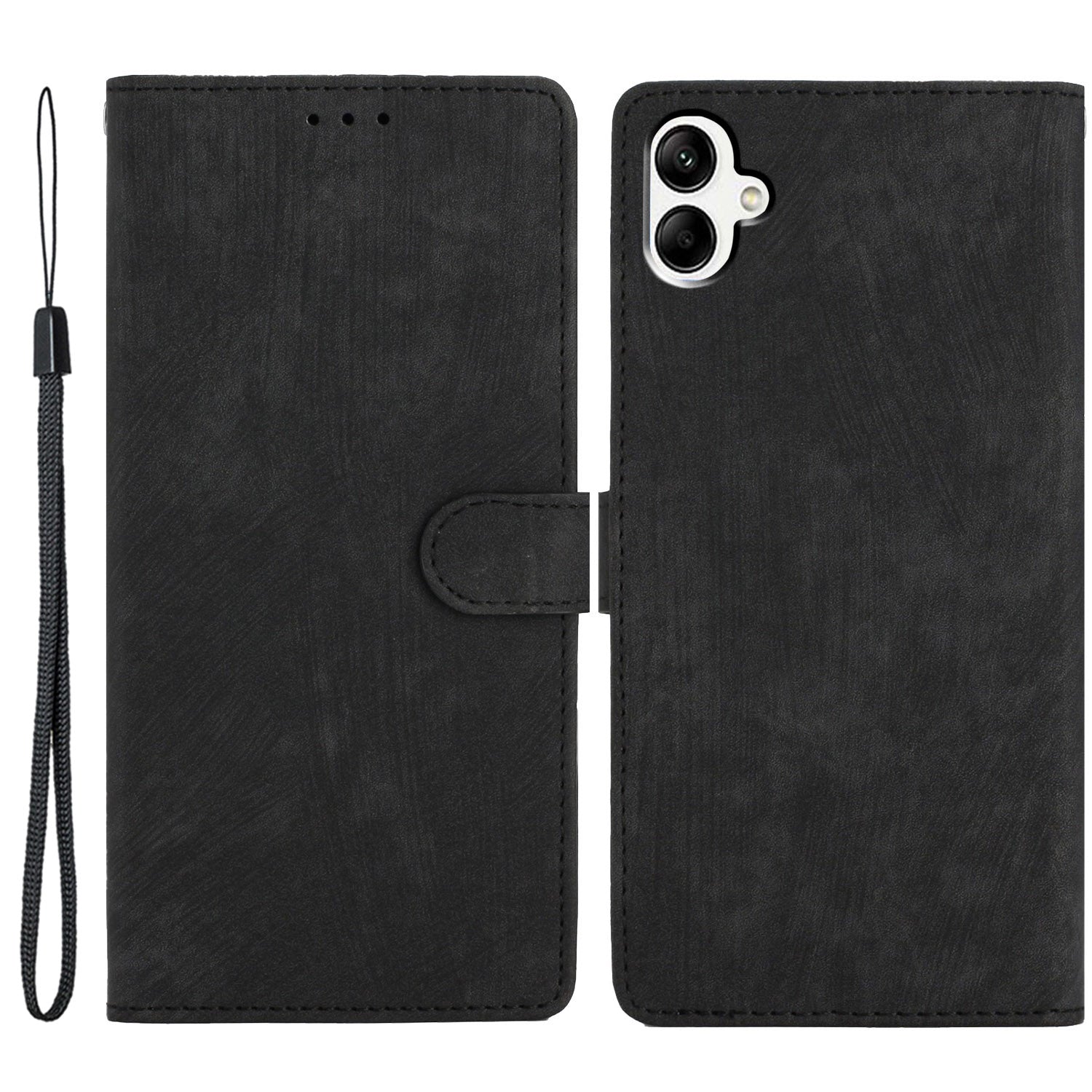 For Samsung Galaxy A06 Case with Card Clots Skin-touch PU Leather Phone Cover Stand - Black