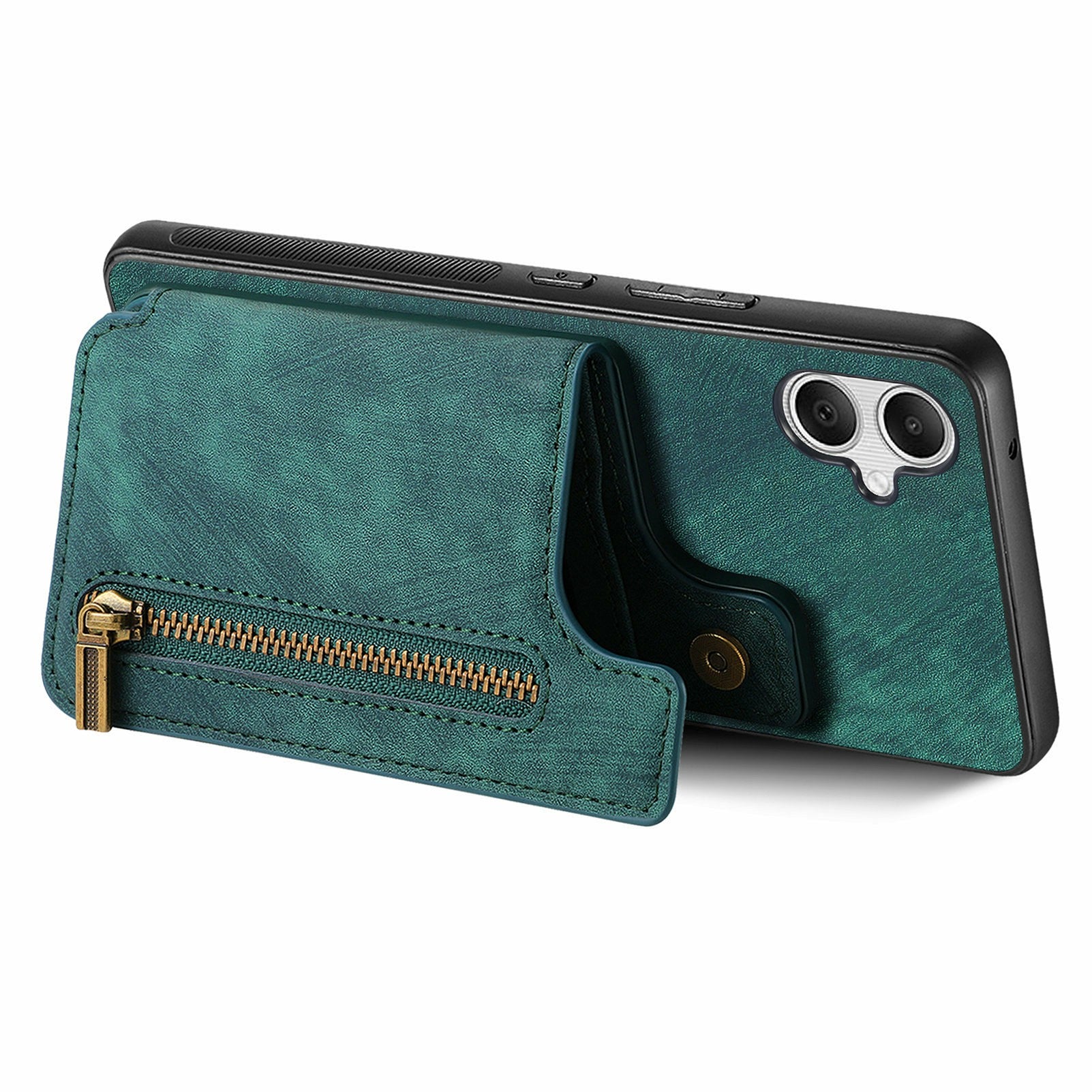 For Samsung Galaxy A06 Case with Card Holder Retro Leather+TPU Zipper Phone Cover - Green