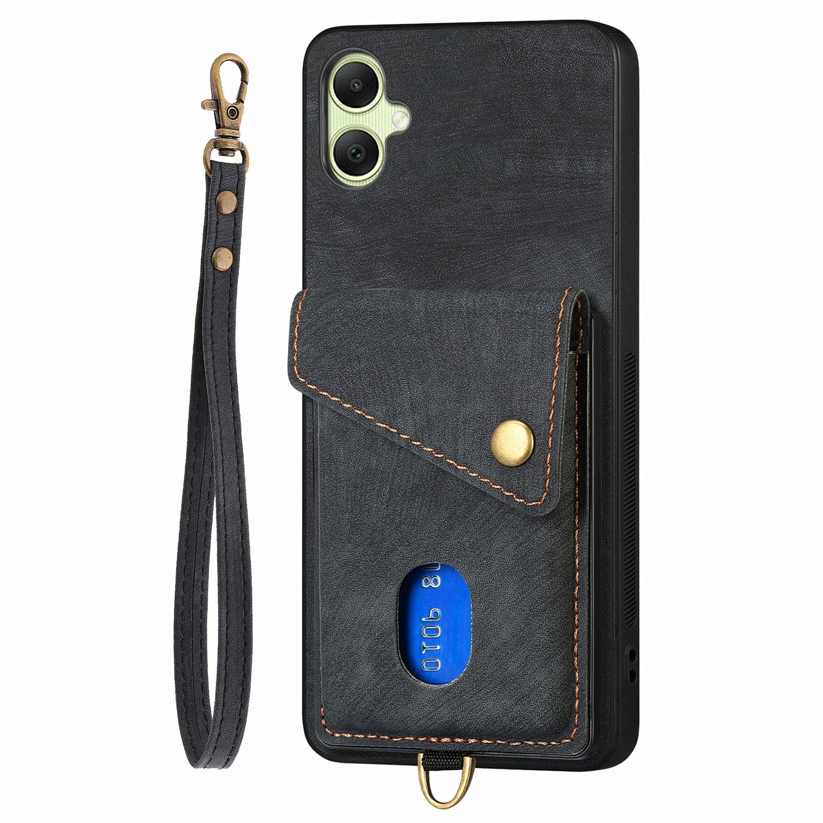 For Samsung Galaxy A06 Case with Card Slot Kickstand Leather TPU Phone Cover - Black