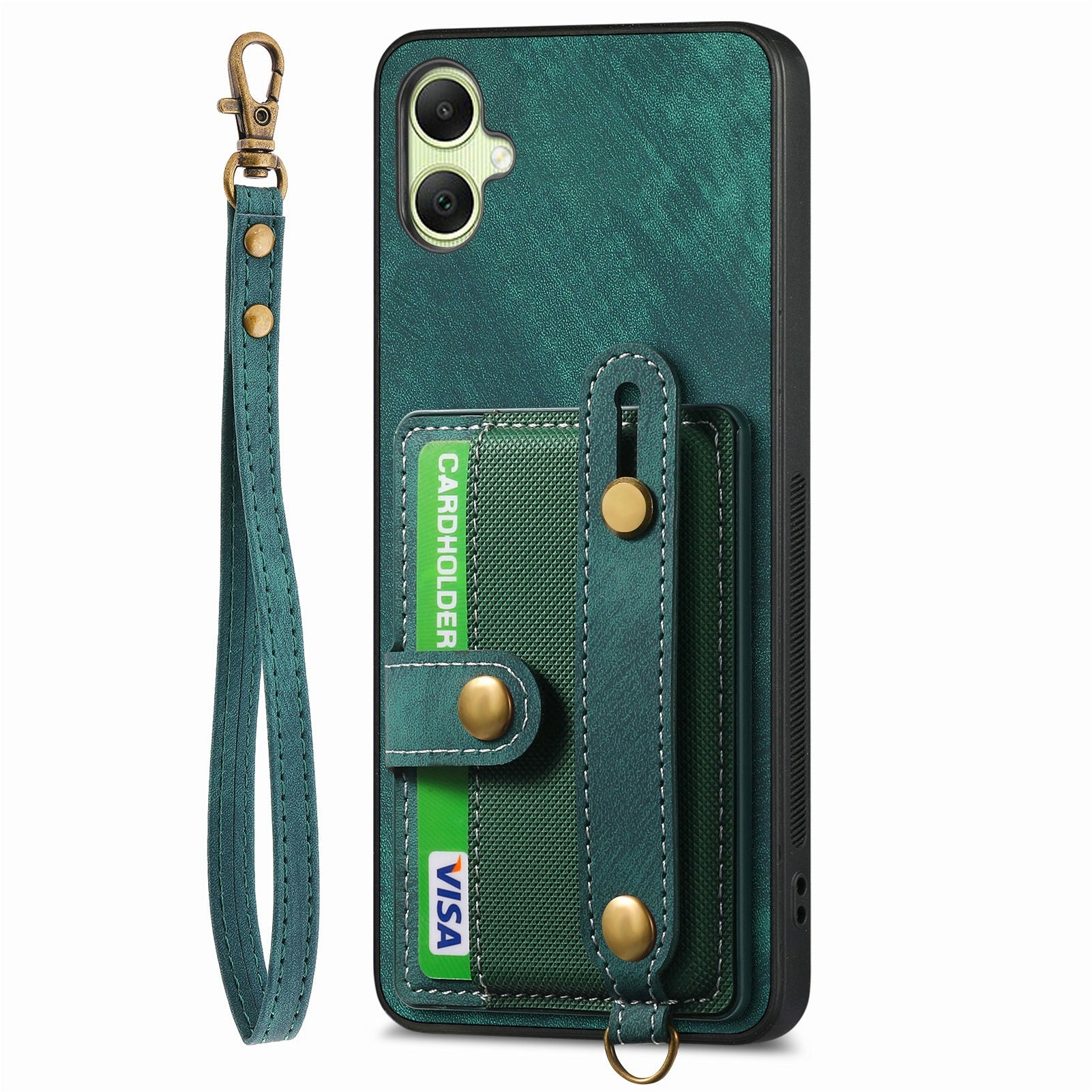 For Samsung Galaxy A06 Case Wristband Kickstand PU Leather Retro Back Cover Card Holder - Green