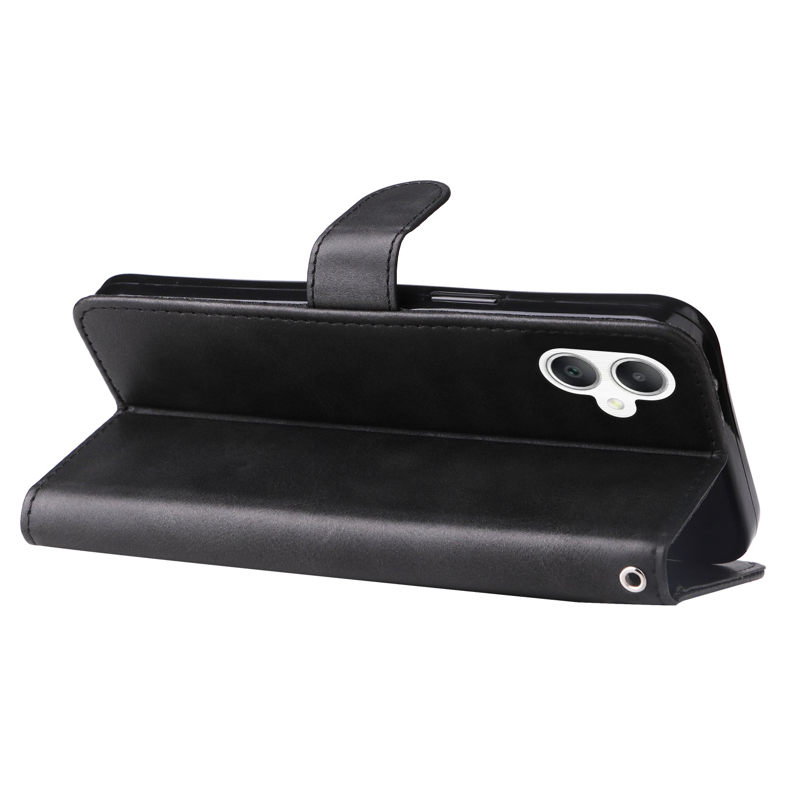 For Samsung Galaxy A06 Case Zipper Wallet Calf Texture PU Leather Phone Cover - Black