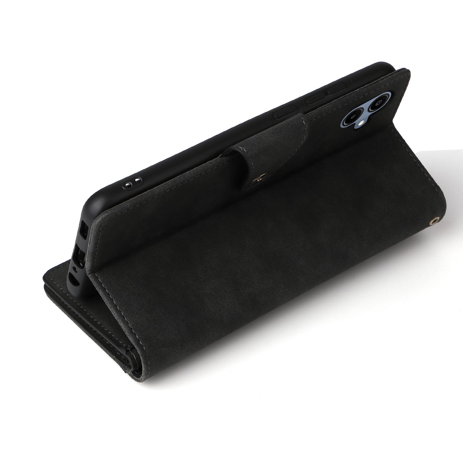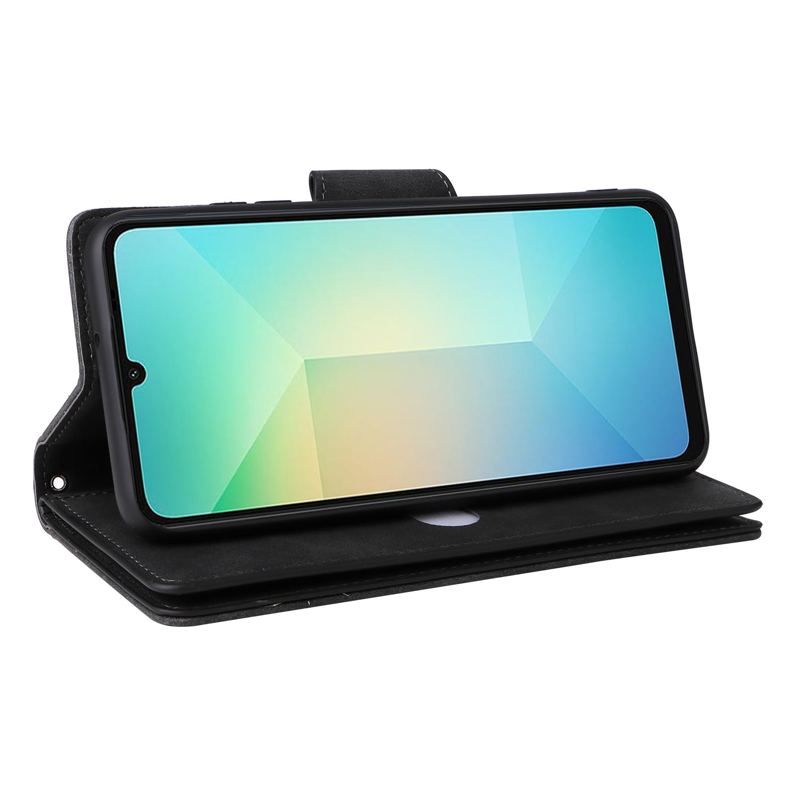 For Samsung Galaxy A06 Case Zipper Wallet Leather Stand Phone Cover Rivet Decor - Black