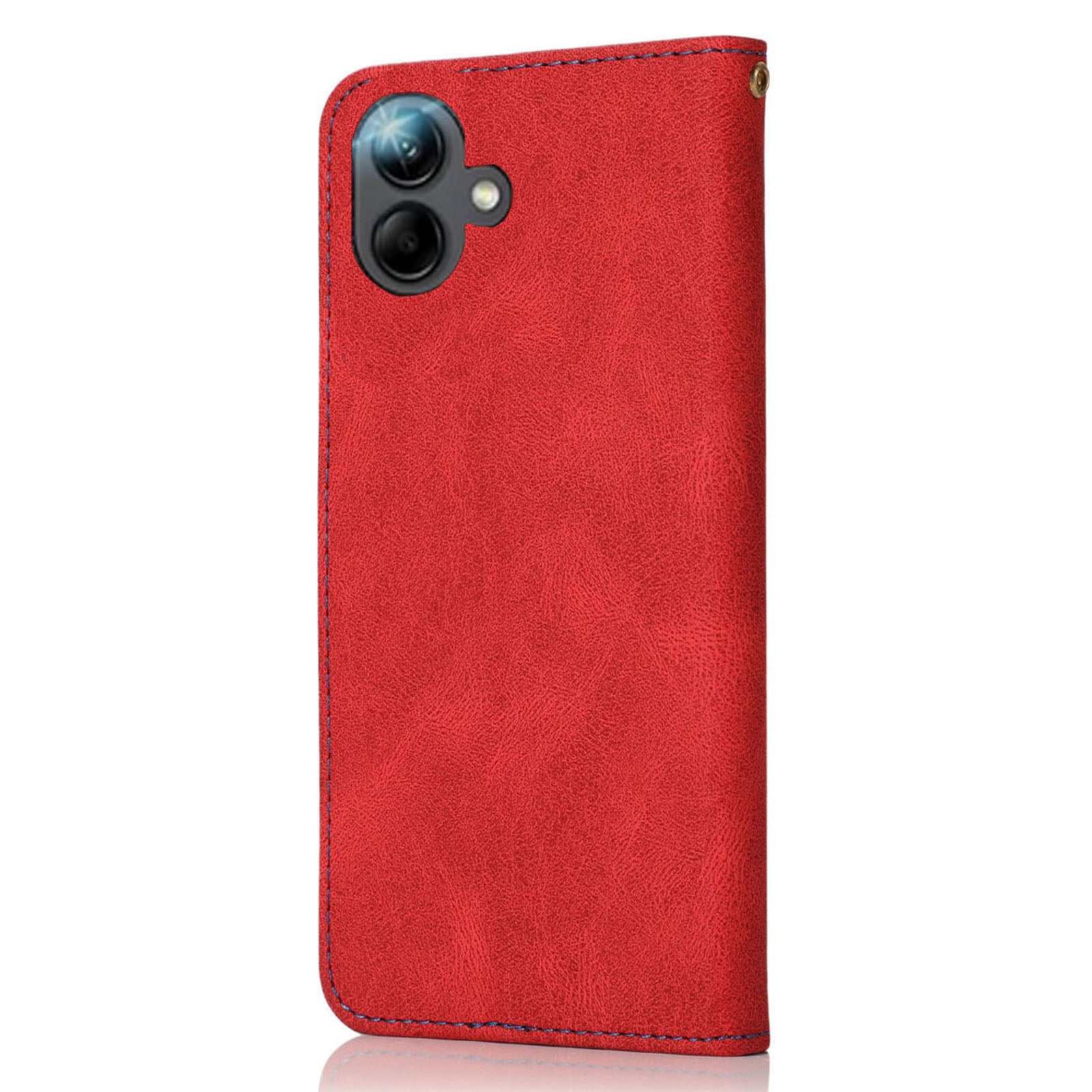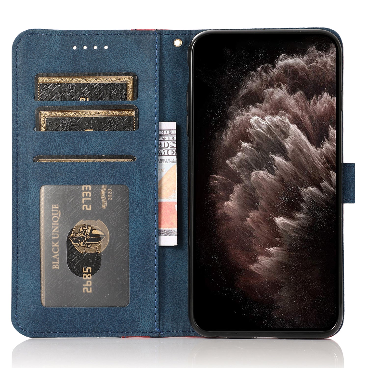 For Samsung Galaxy A06 Cover Color Splicing Wallet Stand Leather Phone Case with Wrist Strap - Red+Blue