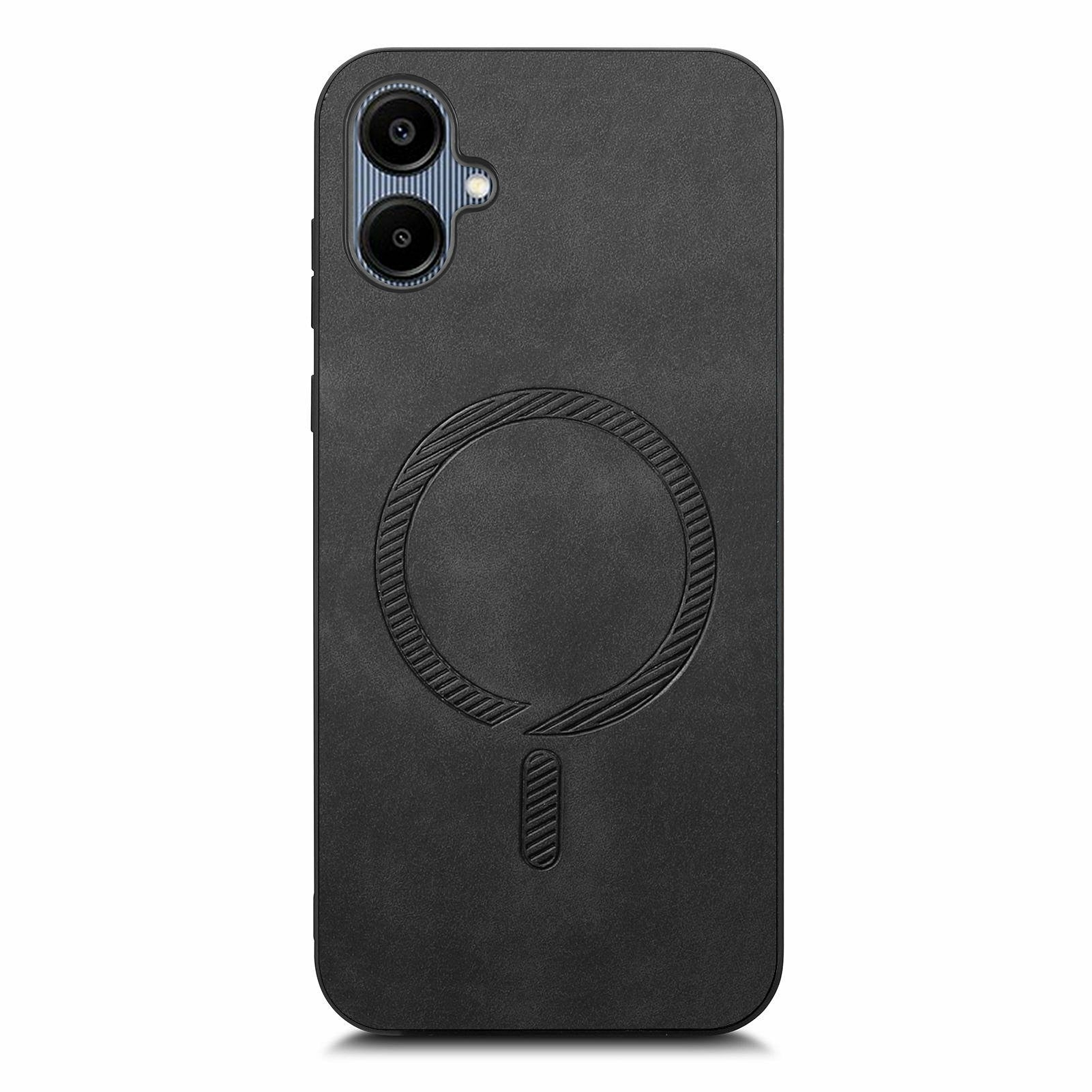 For Samsung Galaxy A06 Leather Back Case Compatible with MagSafe Skin-Touch Phone Cover - Black