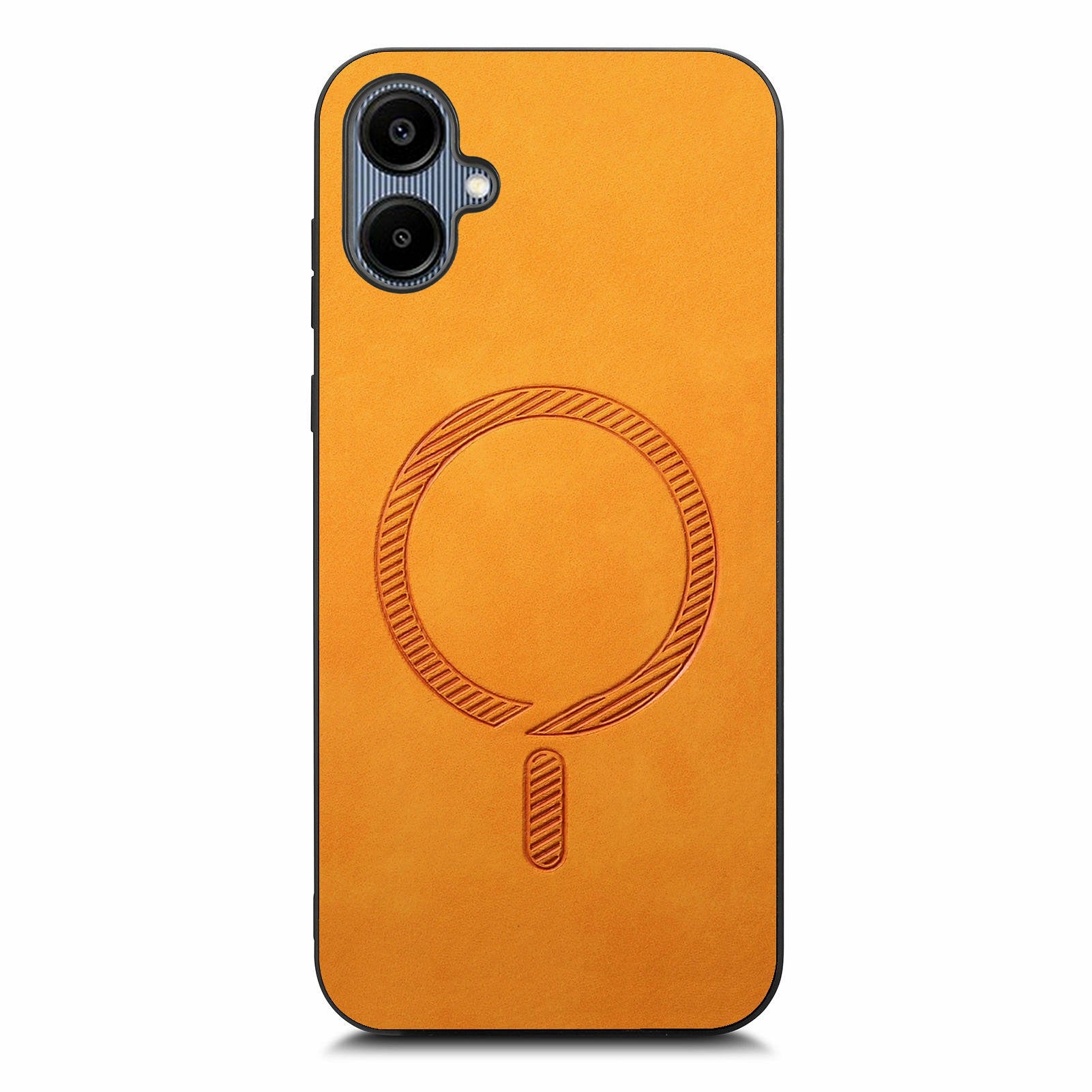 For Samsung Galaxy A06 Leather Back Case Compatible with MagSafe Skin-Touch Phone Cover - Yellow